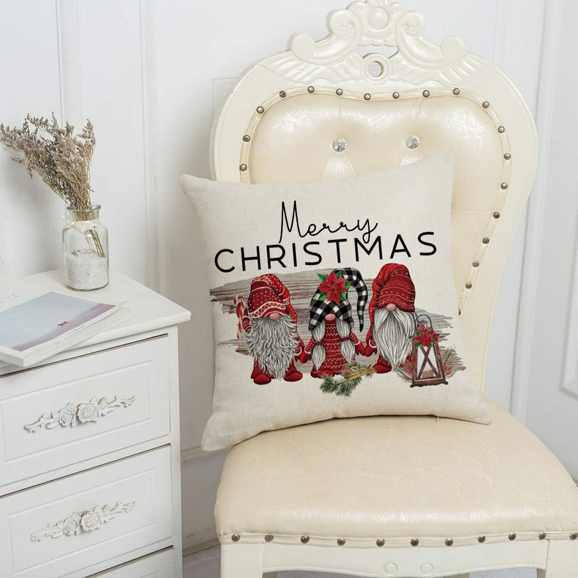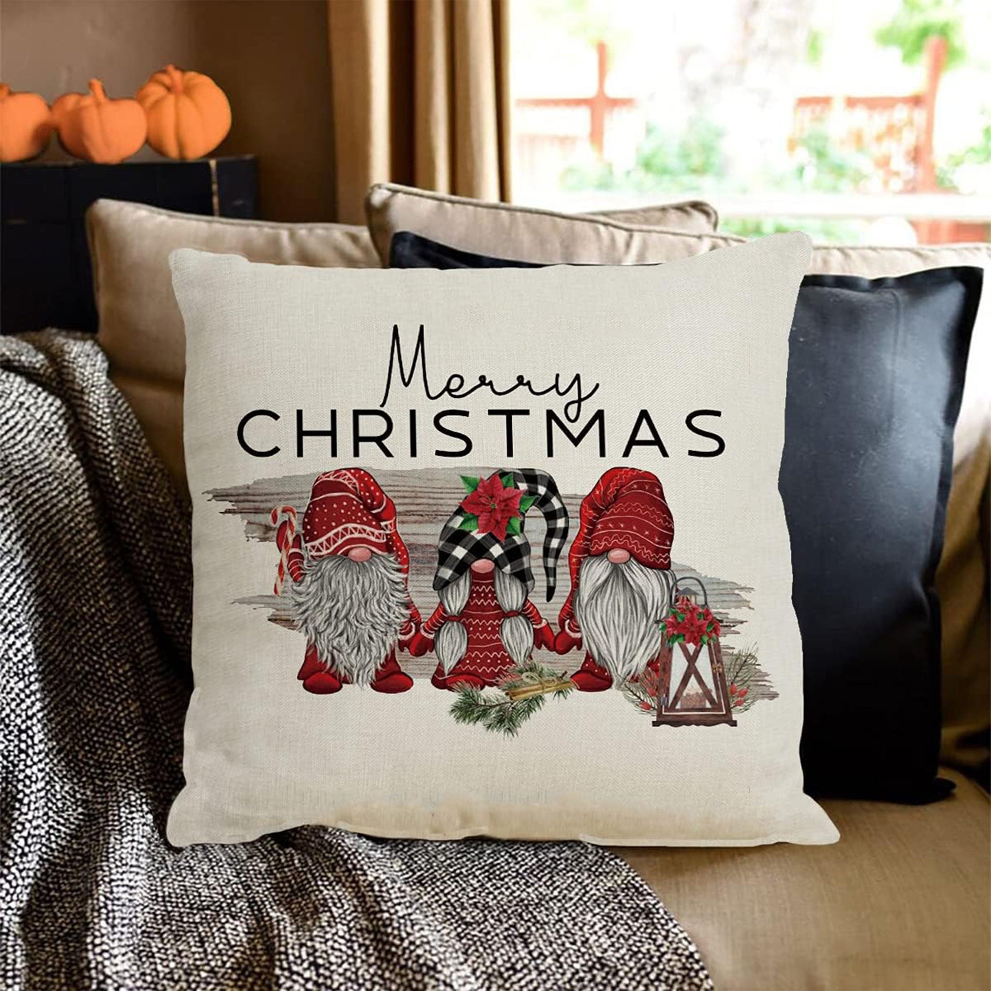 Rojdestvo Gnome Dekorativ Yostiq Qopqog'i 16x16 18x18 Qizil Ferma Yostiq