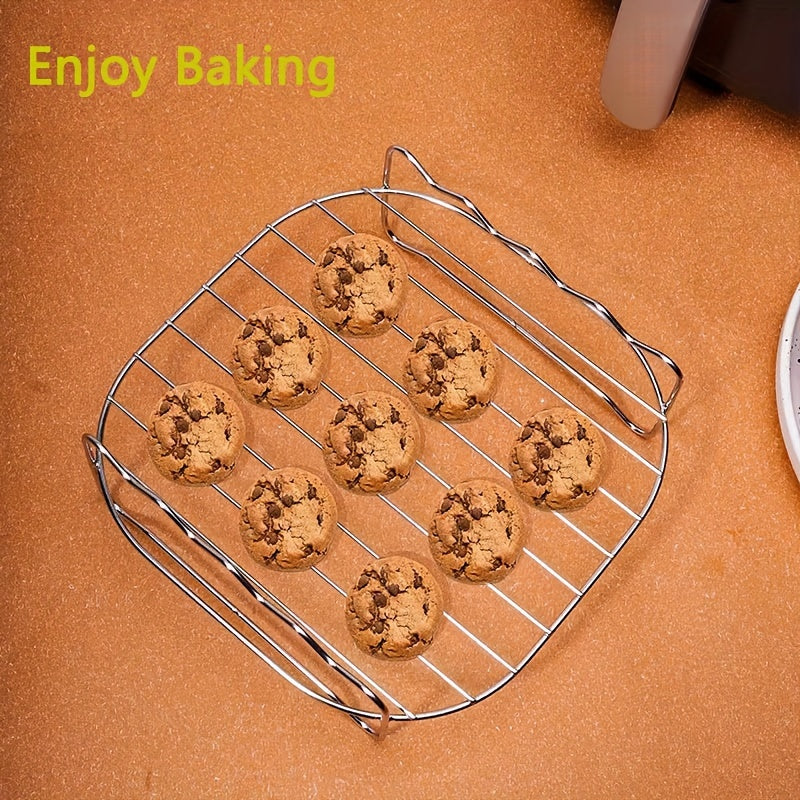 1 dona zanglamas po'latdan yasalgan havo fritöz grillari, 8 dyuym kvadrat dizayni bilan, ikki qatlamli bug'li pishirgich, baliq grillari va tost grillari bilan birga.