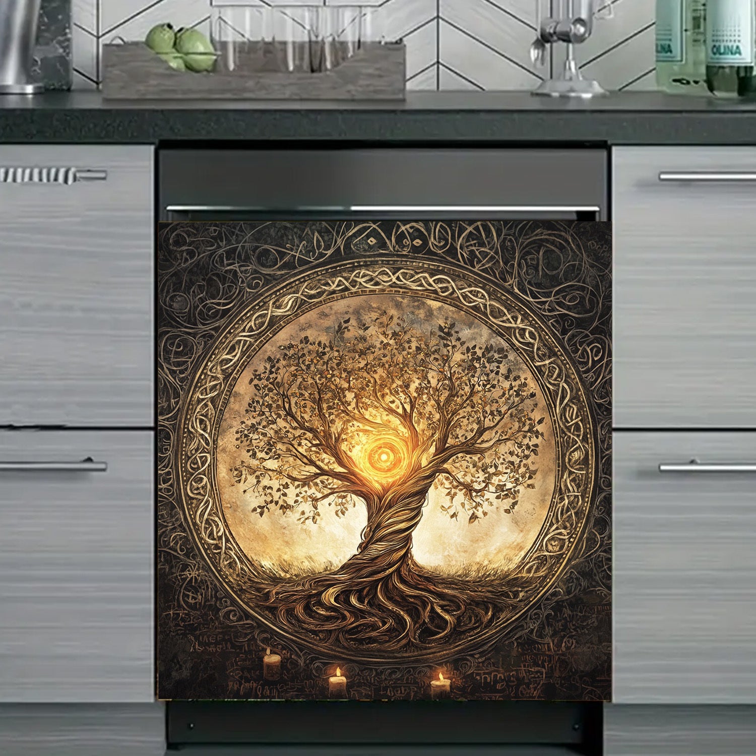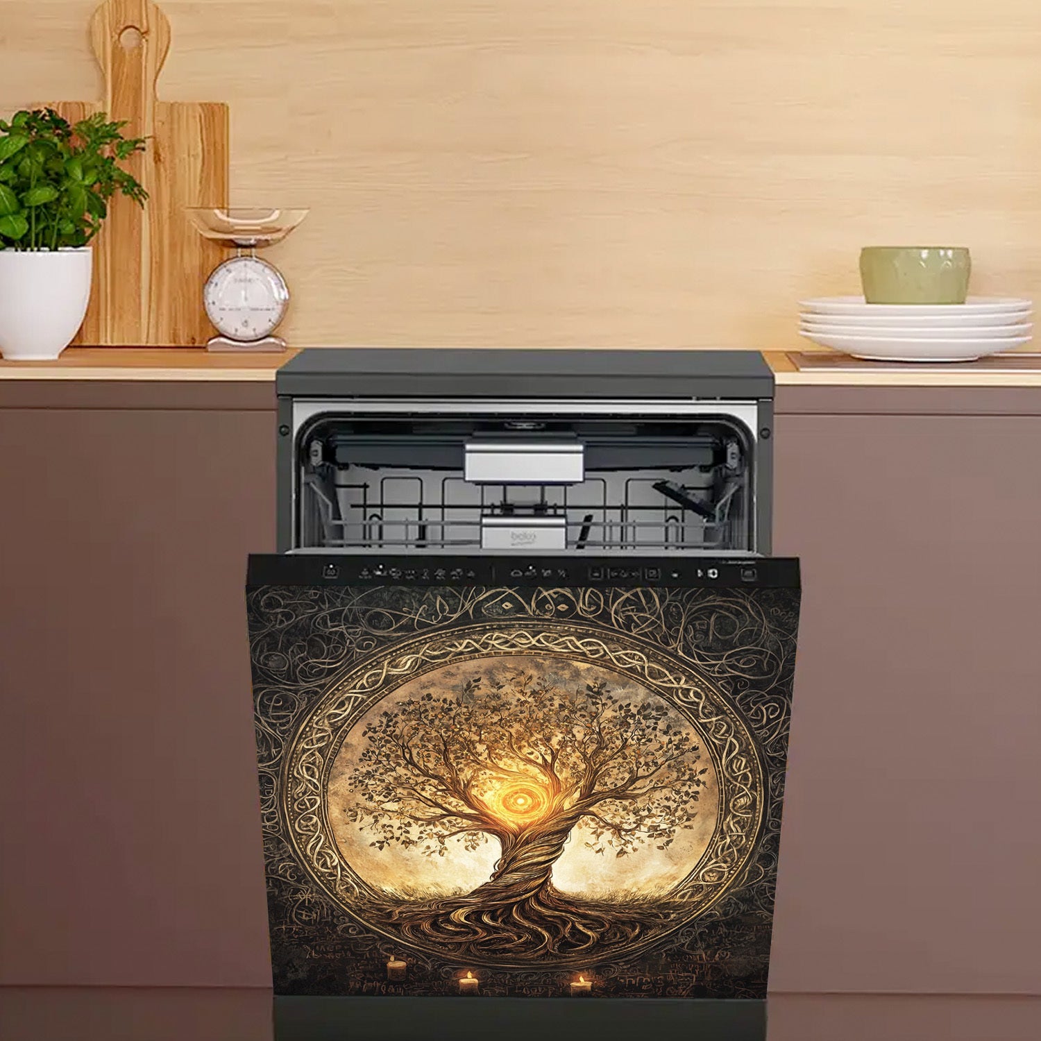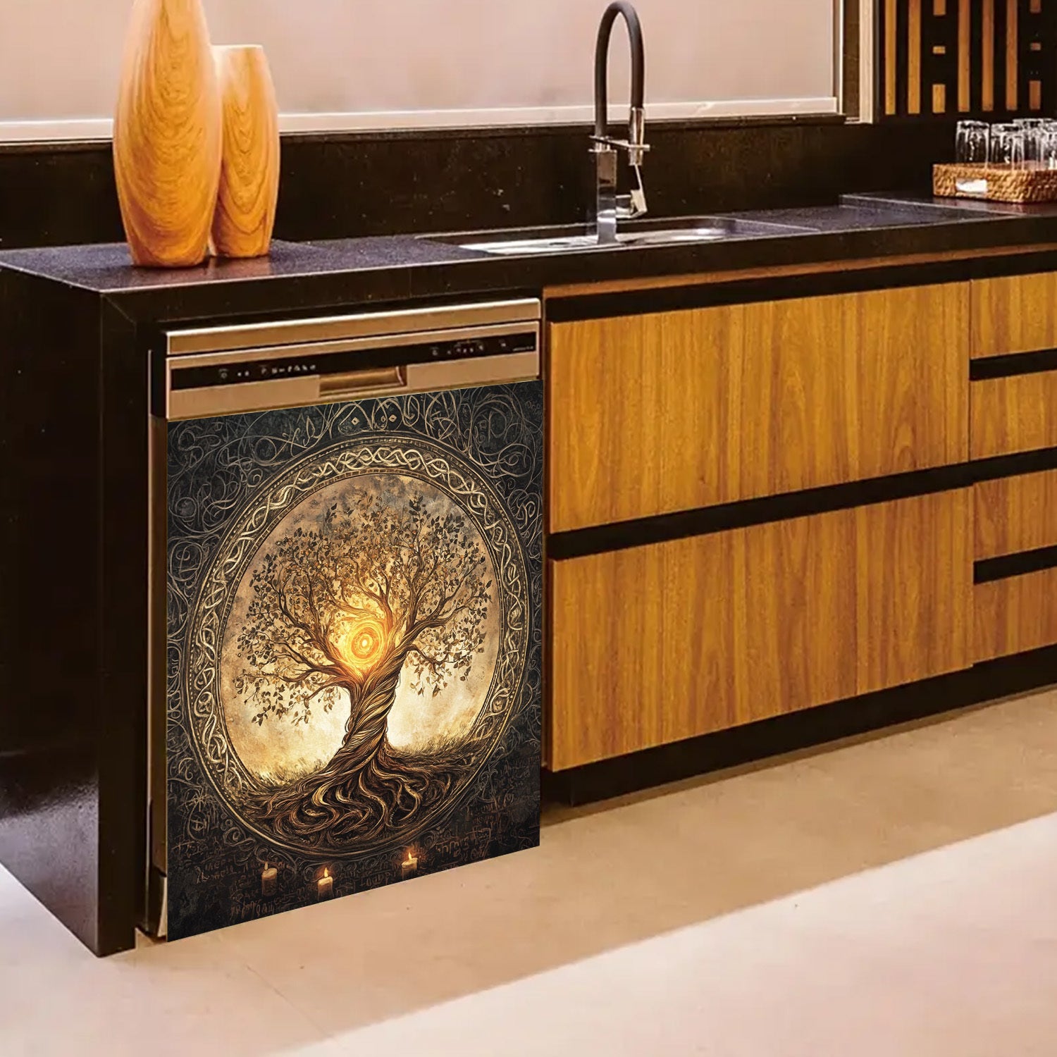 Magnitli idish-tovoq yopishqoq stiker, suv o'tkazmaydigan, issiqlikka chidamli, metall paneli, daraxt dizayni