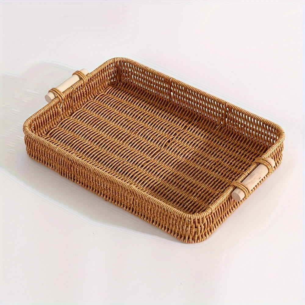 1 dona To'qilgan Rattan Saqlash Savati, Yog'och Tutqichlar bilan, Zamonaviy To'rtburchakli Qozon, To'plangan, Uy yoki Mehmonxonada Turli Maqsadlar Uchun.