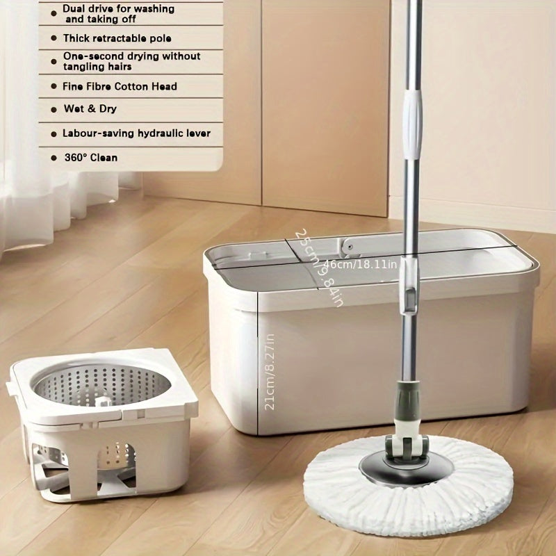1 to'plam aylanuvchi mopa va chelak, 1 to'plam mop matosi bilan. Tozalash loy chelaki kiradi va uy, oshxona va hammom pollari uchun mos keladi. Quruq va nam tozalash uchun ishlatilishi mumkin. Maktab jihozlari uchun mukammal tozalash vositasi.