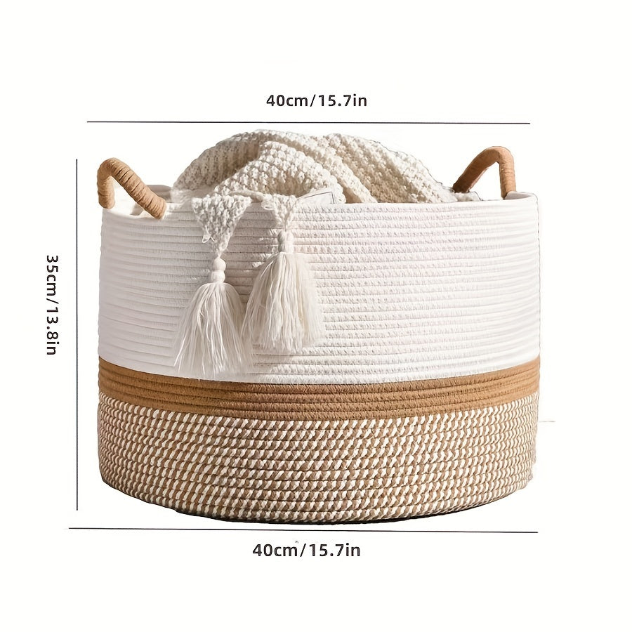 1 ta to'qilgan savat saqlash uchun, 4 rangda mavjud; kir yuvish, yashash xonasi, bolalar xonasi, yostiqlar va o'yinchoq qutisi uchun mos.