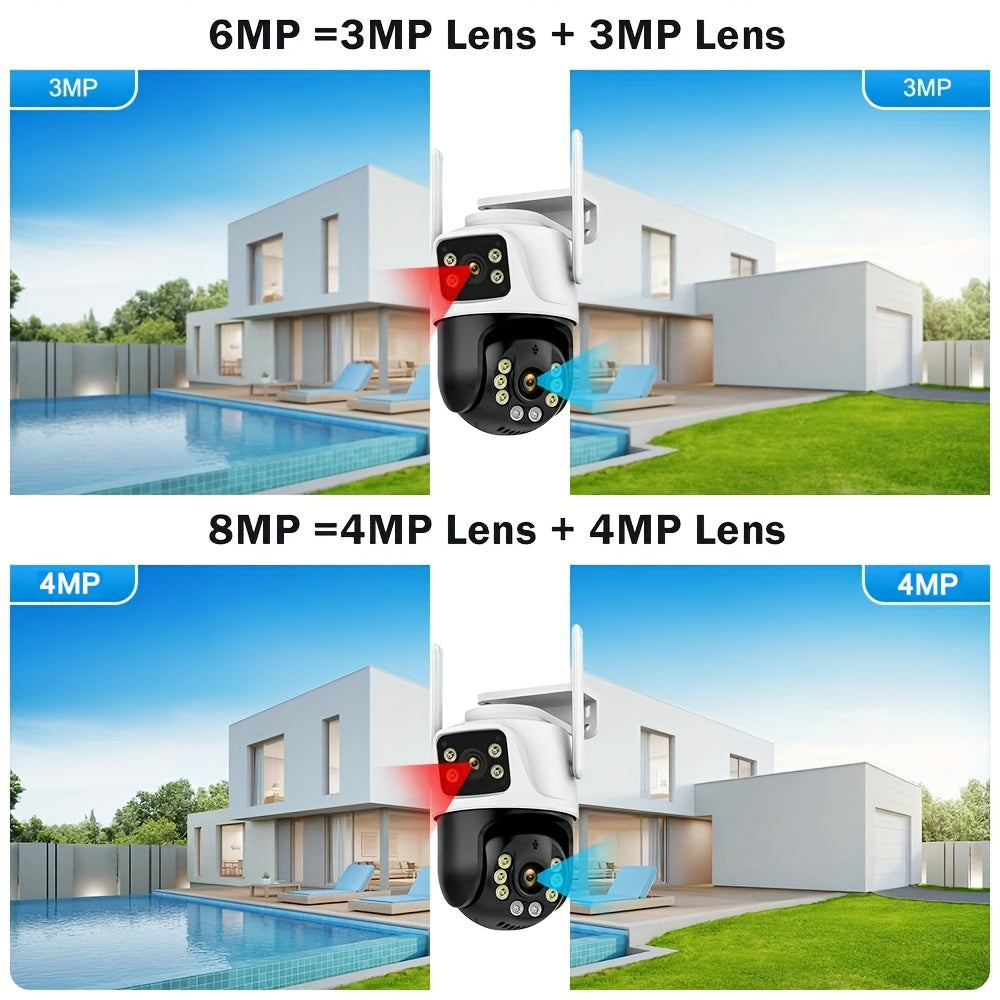 Ushbu mahsulot 2 dona 4MP linzali 1 dona 4K 8MP WiFi xavfsizlik kamerasi bo'lib, jami 8MP juft linza imkoniyatini taqdim etadi. Bu 2.4 GHz simsiz IP kamera uy xavfsizligi CCTV monitoring video uchun mo'ljallangan. U sun'iy intellekt insonni kuzatish, rangli tungi ko'rish, ikki tomonlama audio, harakat signalizatsiyasi va kamerani siljitish orqali burish va aylantirish imkoniyatiga ega. Alexa bilan mos keladi, ushbu ichki va tashqi kuzatuv kamerasi yomg'irga chidamli va ICSEE ilovasi bilan ishlatish uchun mos keladi. TF kartasini talab qilmaydi va Yevropa vilkasi bilan birga keladi.