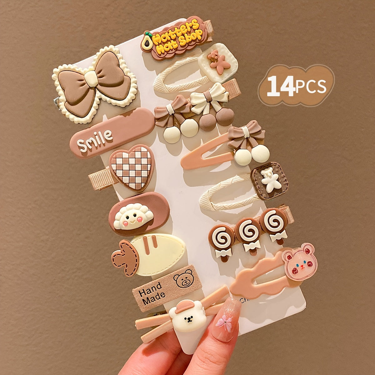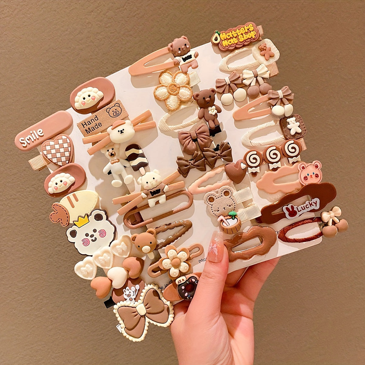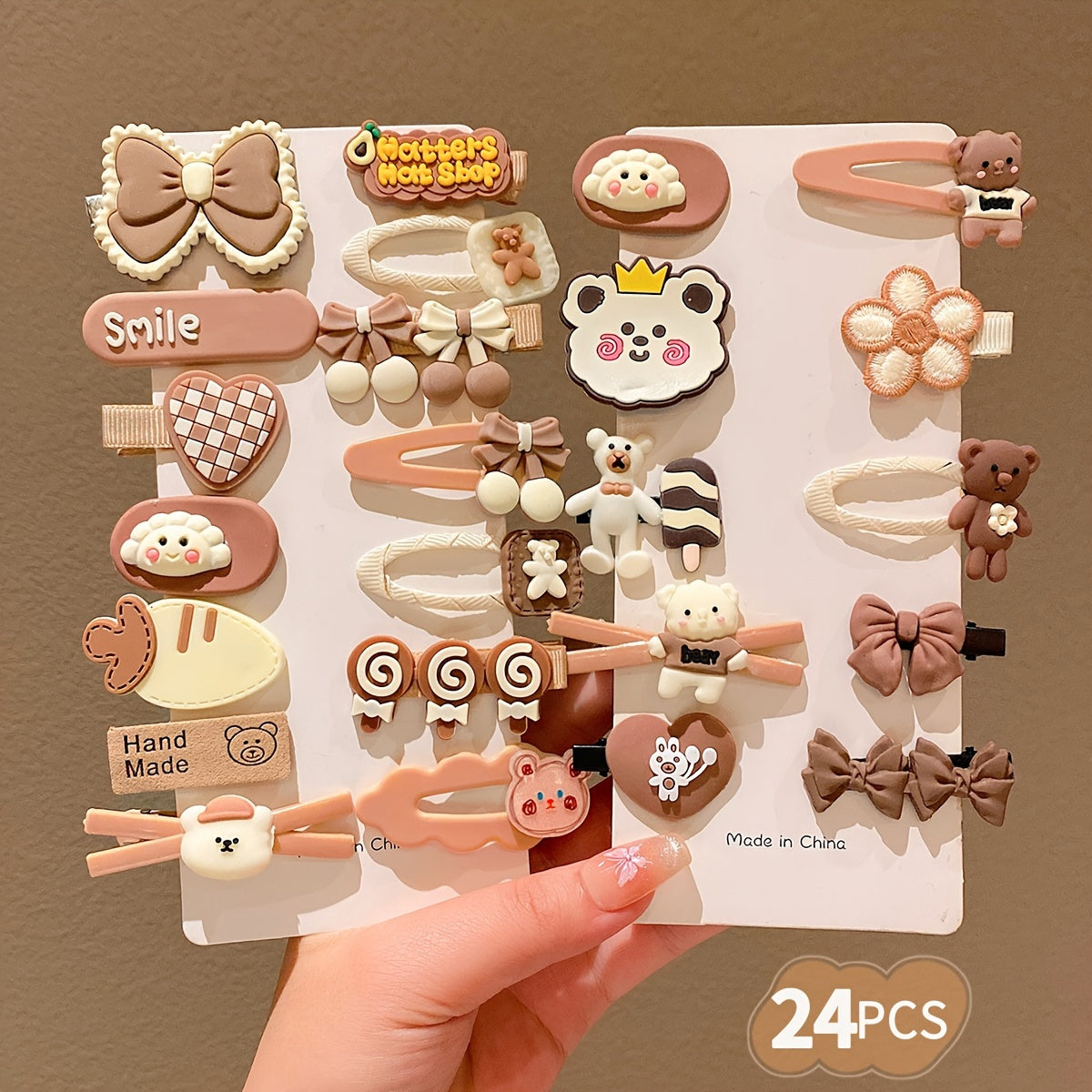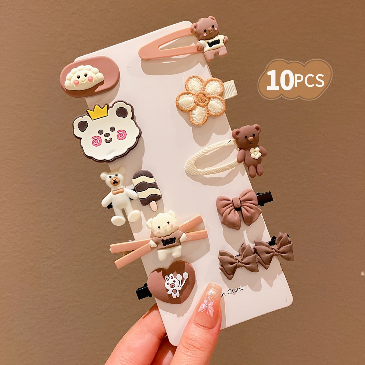 10/14/24 dona jigarrang soch kliplari qizlar uchun, kuz-qish mavsumi, multfilm bosh kiyimlari, mato bo'lmagan material
