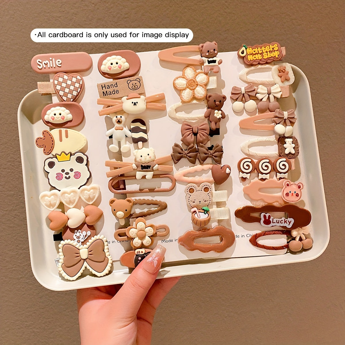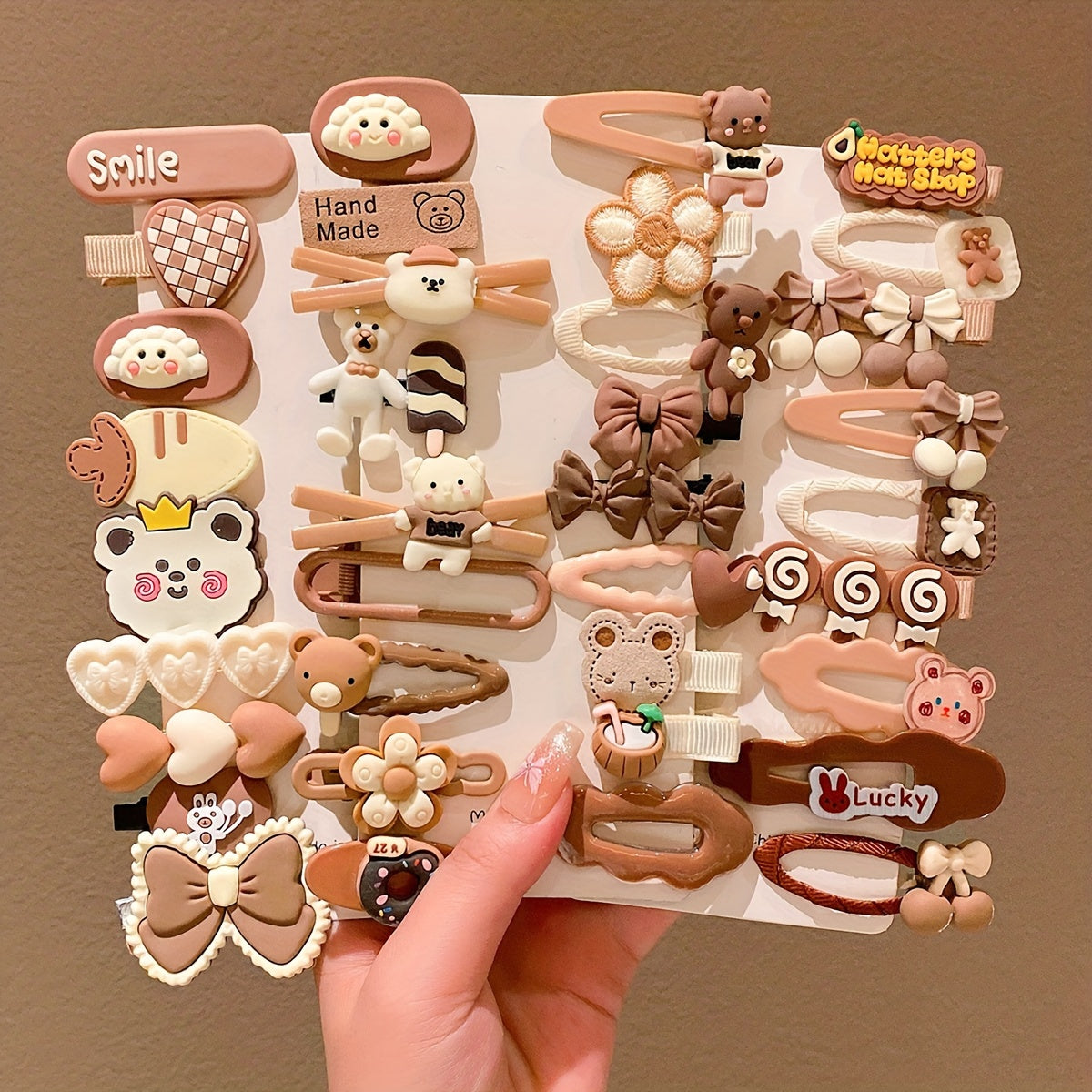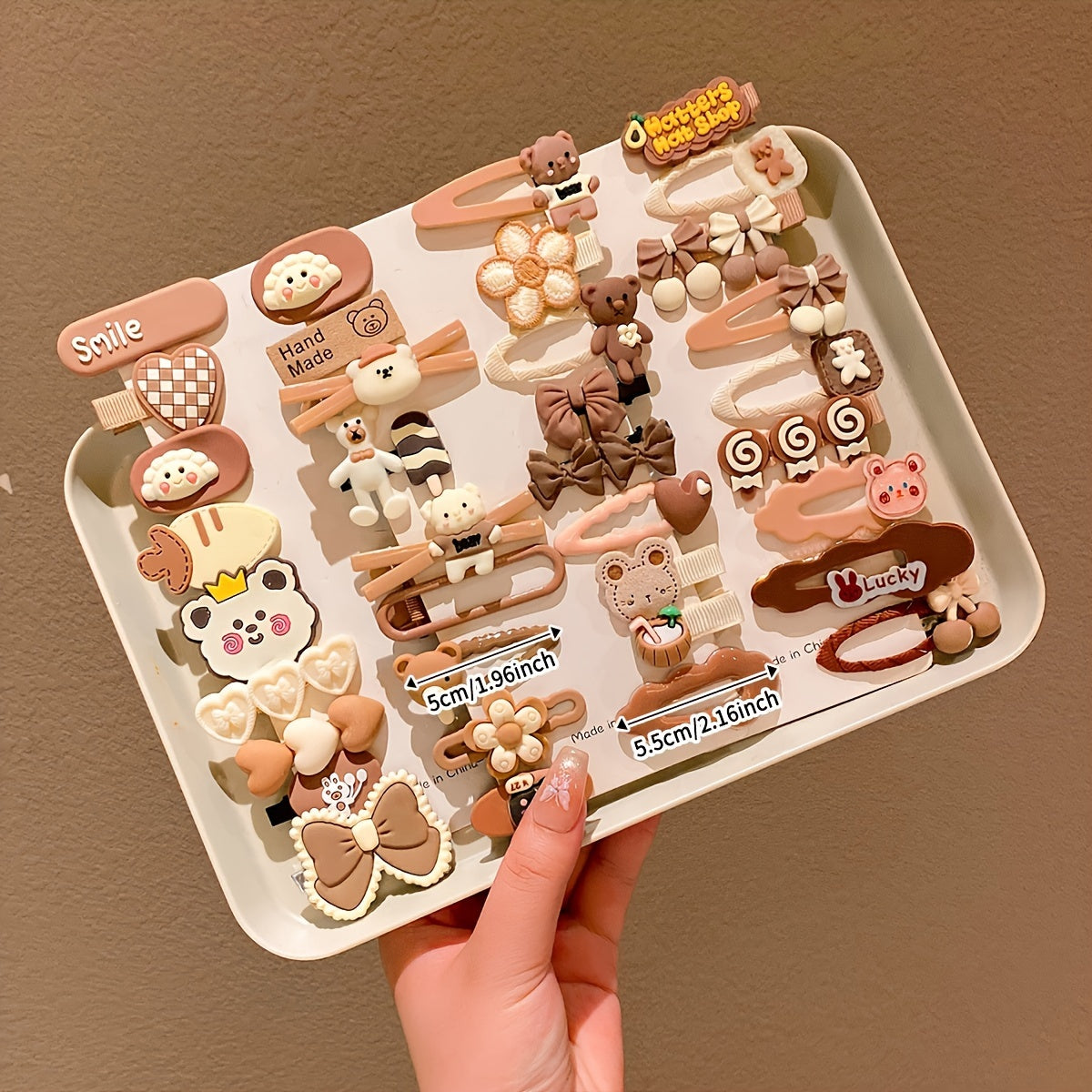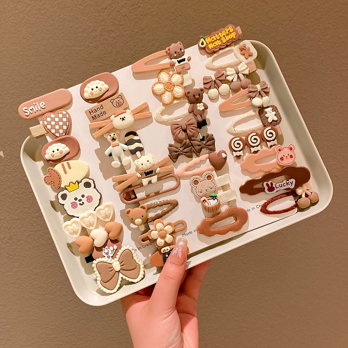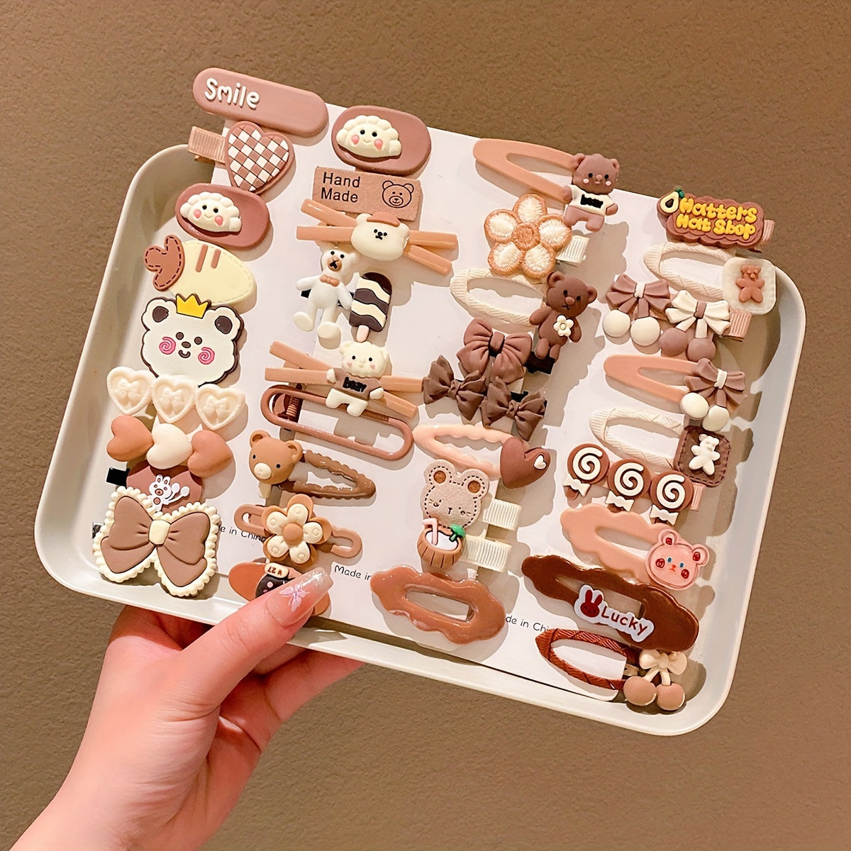 10/14/24 dona jigarrang soch kliplari qizlar uchun, kuz-qish mavsumi, multfilm bosh kiyimlari, mato bo'lmagan material
