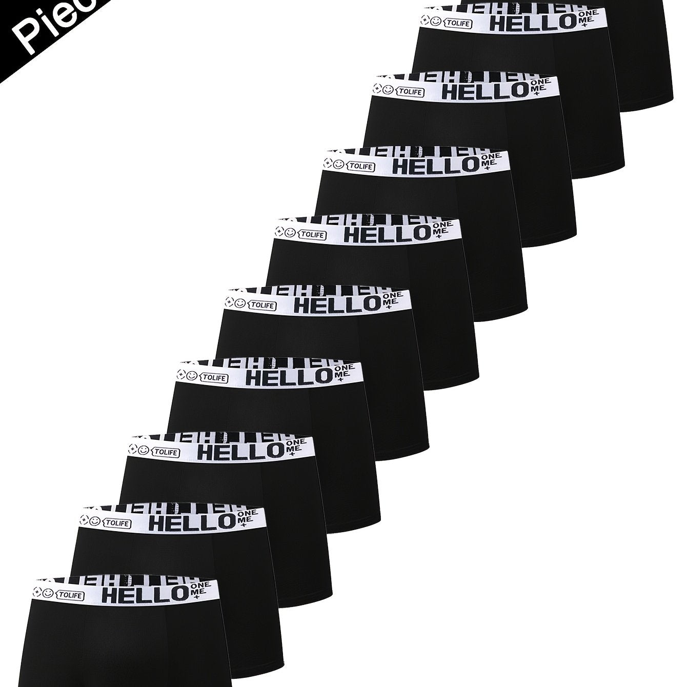10 ta erkaklar uchun 'HELLO' boxer shortlari - turli ranglarda qulay polyester-spandeks aralashmasidan tayyorlangan, nafas oladigan, tez quriydigan sport trunks.