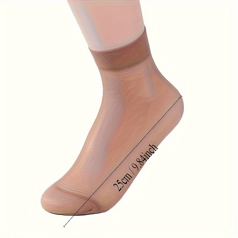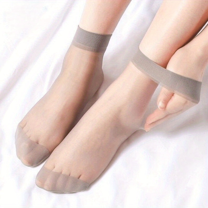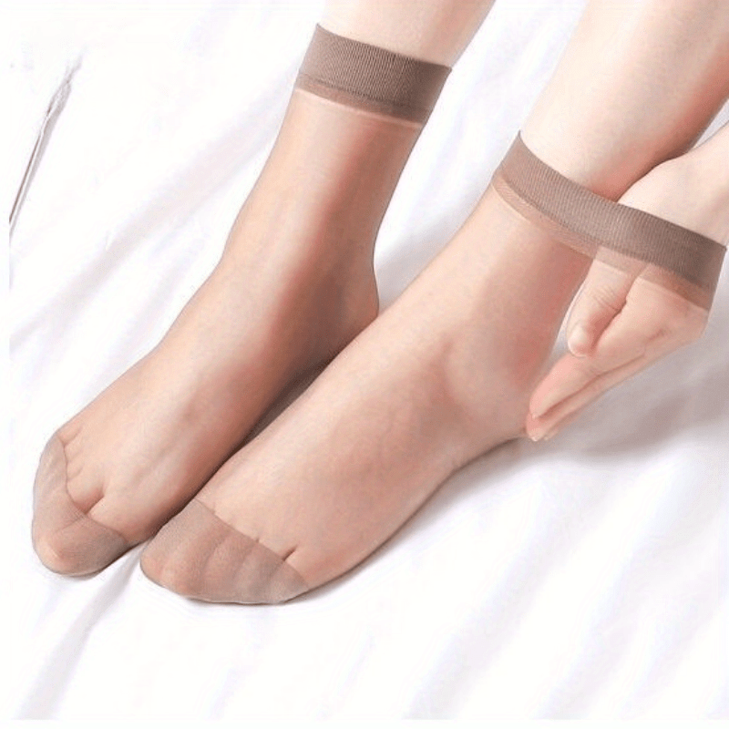 Yozgi ayollar uchun 10 juft ipak paypoqlar, ingichka to'qilgan matodan tayyorlangan, anti-oshqozon va ko'rinmas. Qora, kulrang va och bej ranglarda mavjud. 100% ipakdan tayyorlangan va og'irligi 2g/m².
