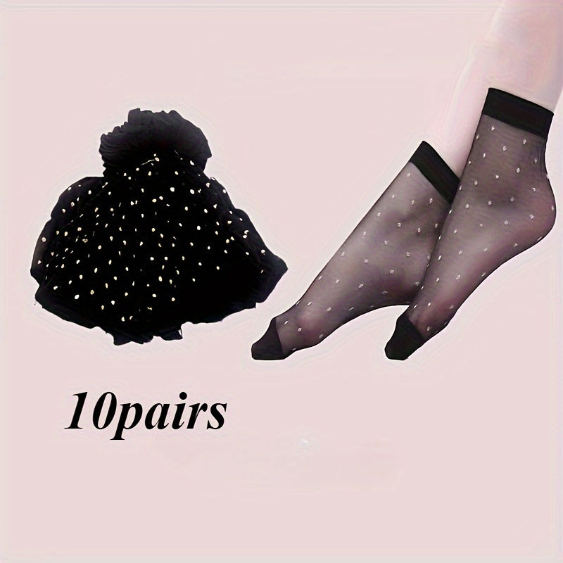 Yoz uchun teri nuqta dizayni bilan 10 juft ayollar uchun shaffof yupqa paypoq