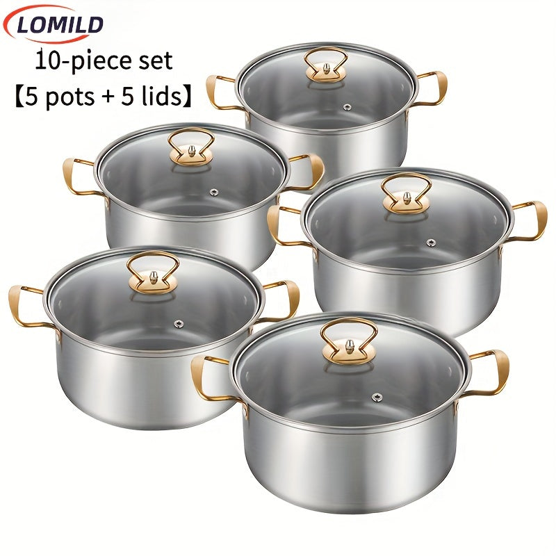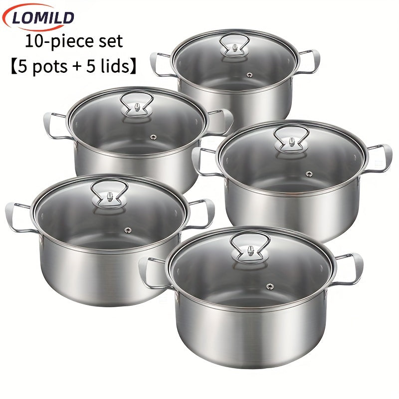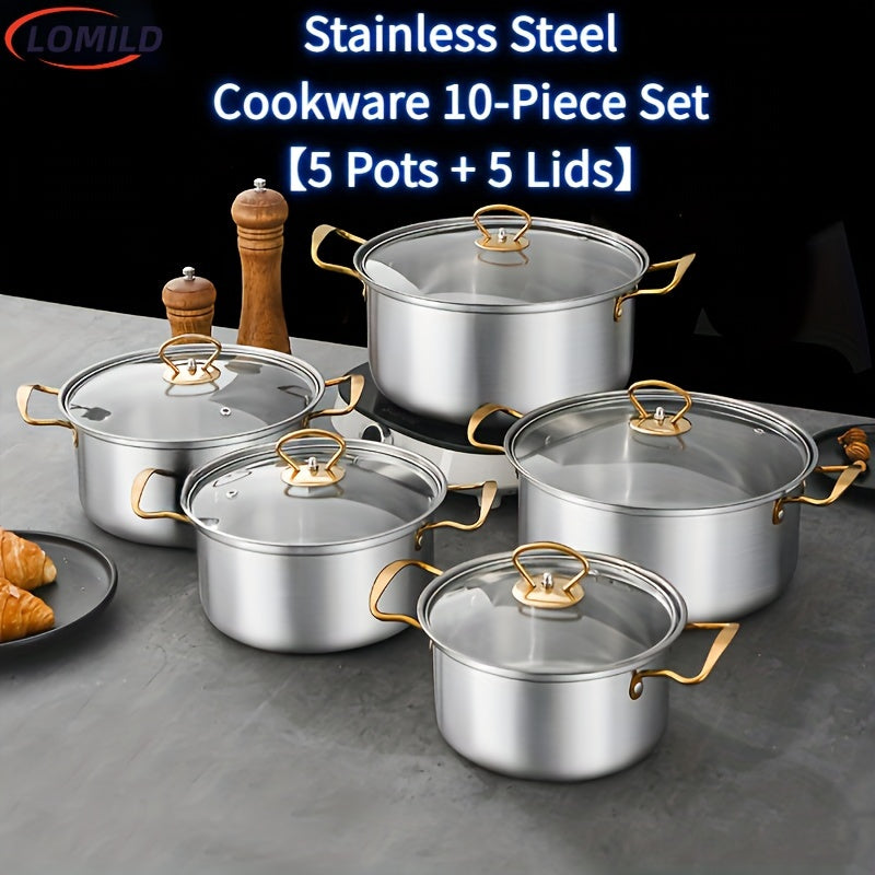 10-Donali zanglamaydigan po'latdan tayyorlangan oshxona to'plami, sho'rva qozoni va oshxona asboblari bilan