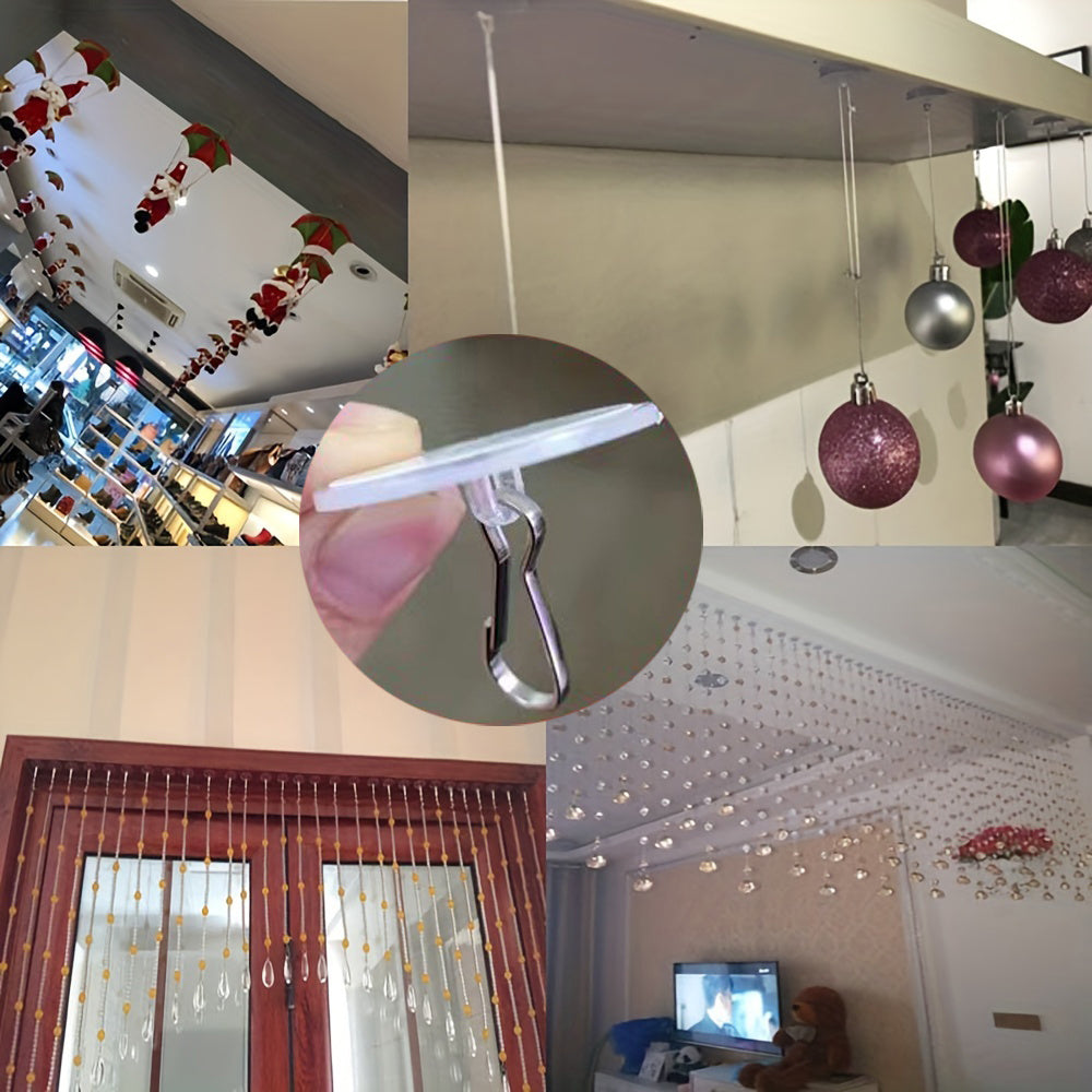 100 ta shift uchun 50 ta yopishqoq va shaffof mustahkam devor kancalari, bayram bezaklari uchun