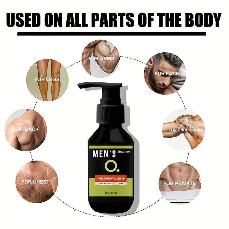 100g Erkaklar uchun Tana, Yuz, Qo'ltiq, Oyoq, Intim Joylar uchun Soch Olish Kremi, O'simlik Squalane bilan Yumshoq Formula.