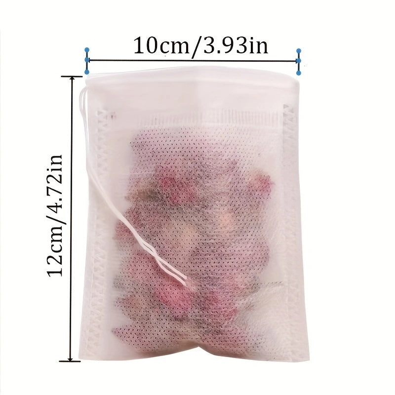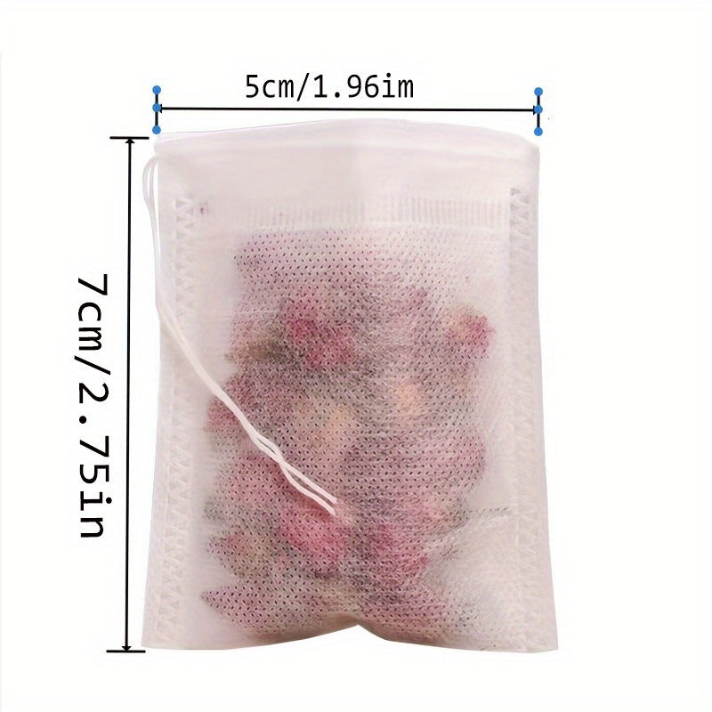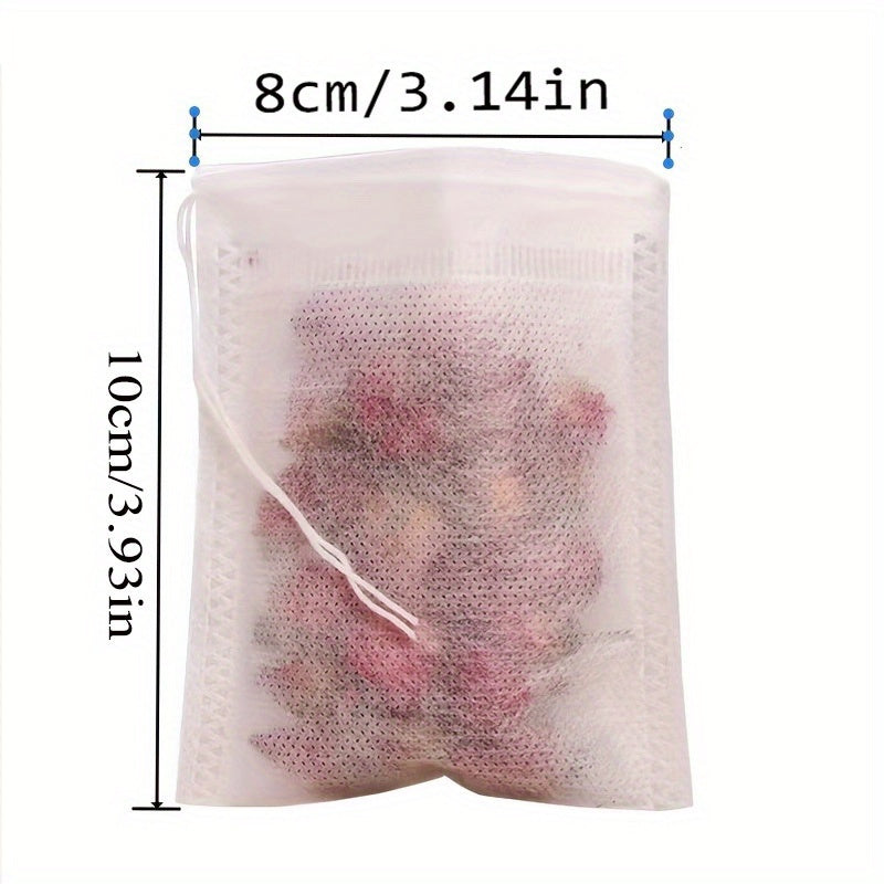 100 dona Bir foydalanish uchun choy infuzor sumkalar, oq, to'qima mato, bo'sh bargli choy va ziravorlar