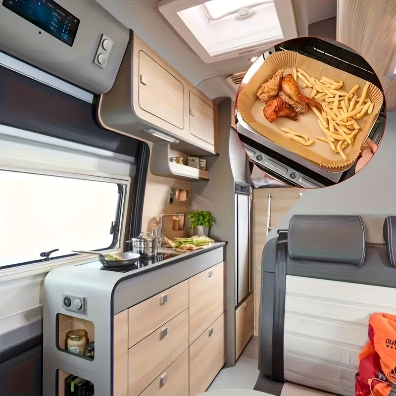 100 dona yopishmaydigan havo frayer uchun pergament qog'oz qoplamalari, pishirish, qovurish, BBQ, issiqlikka chidamli