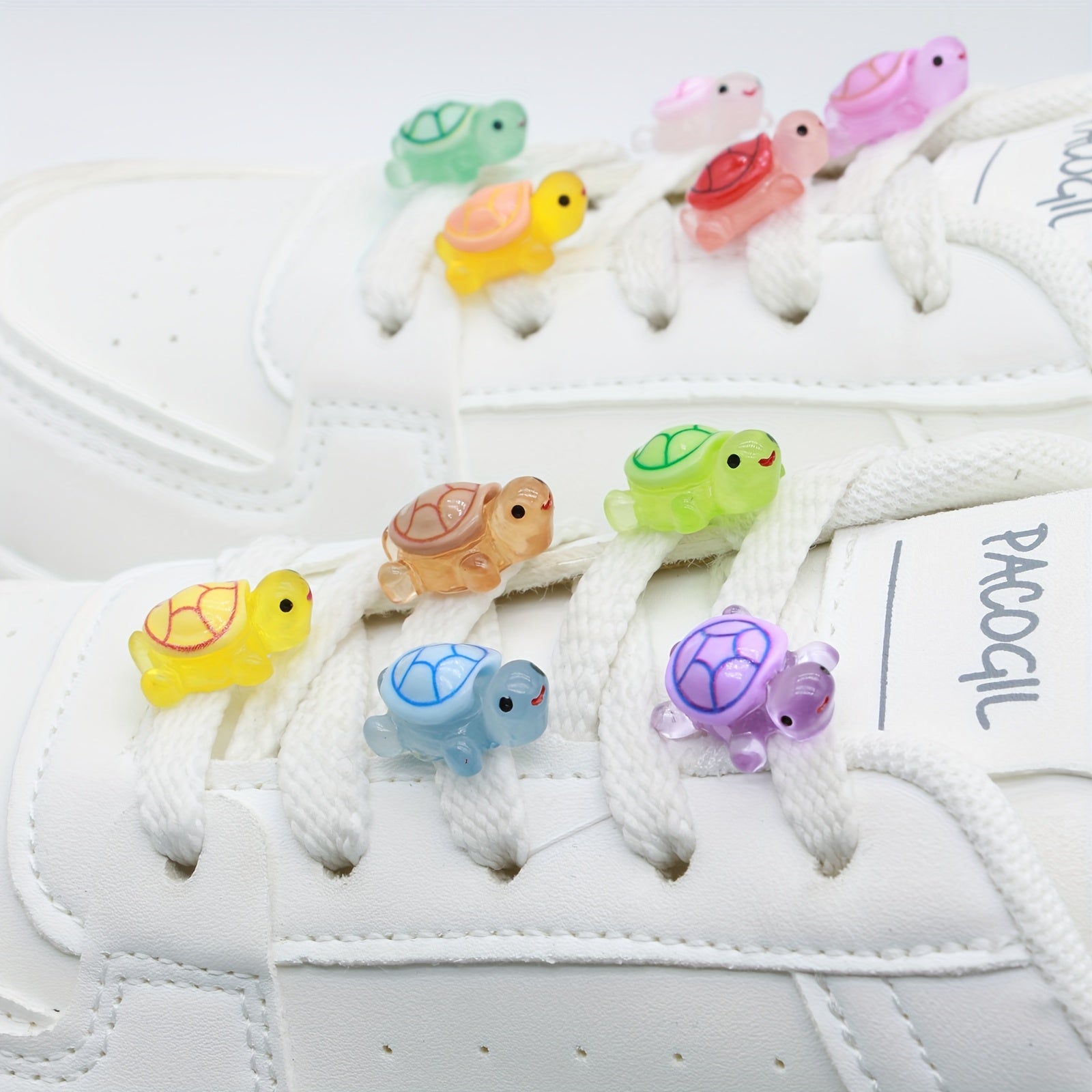 10 dona rangli kichik yoritilgan toshbaqa poyabzal lentalari uchun kalitlar bolalar poyabzal dekoratsiyalari