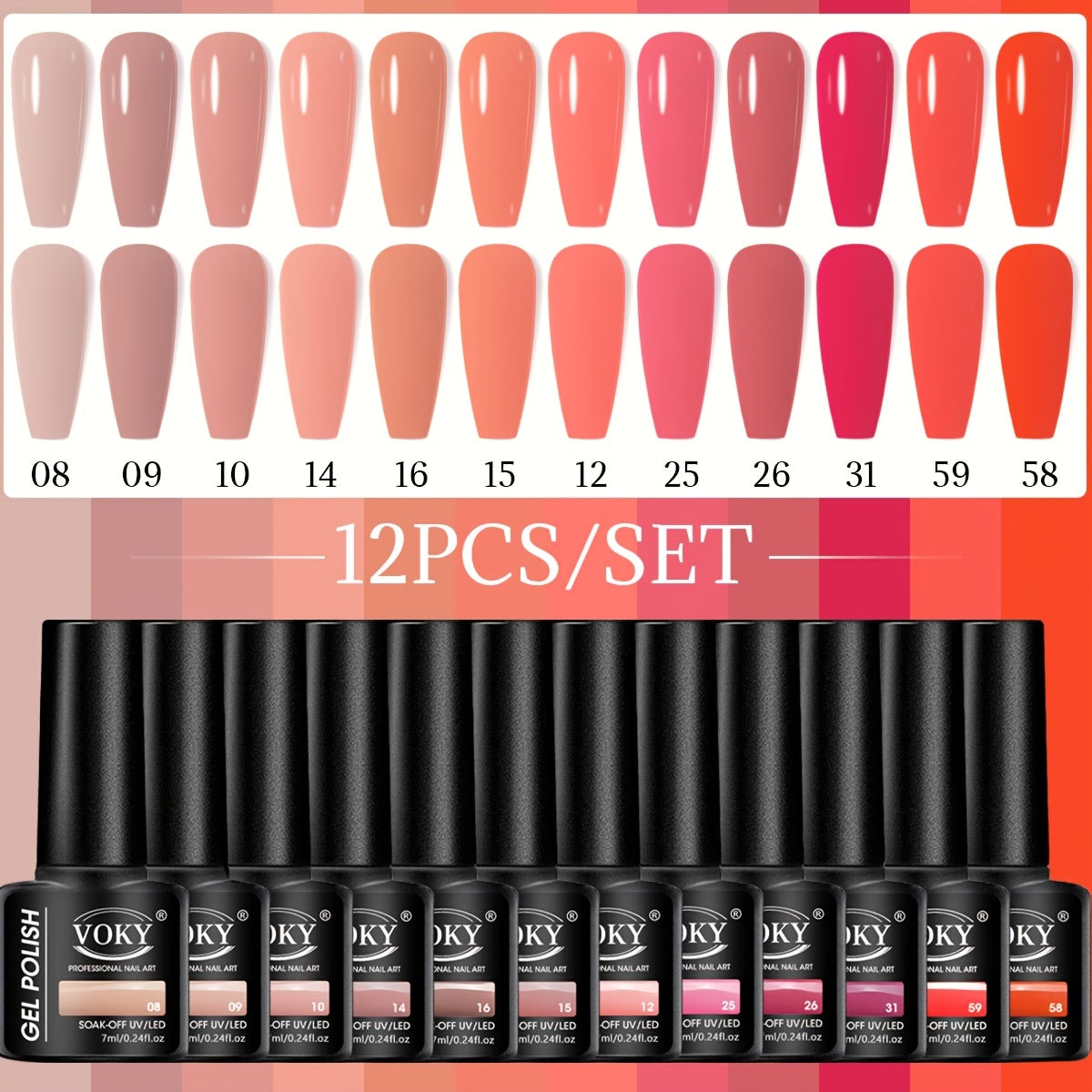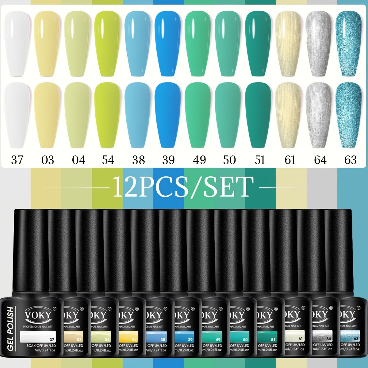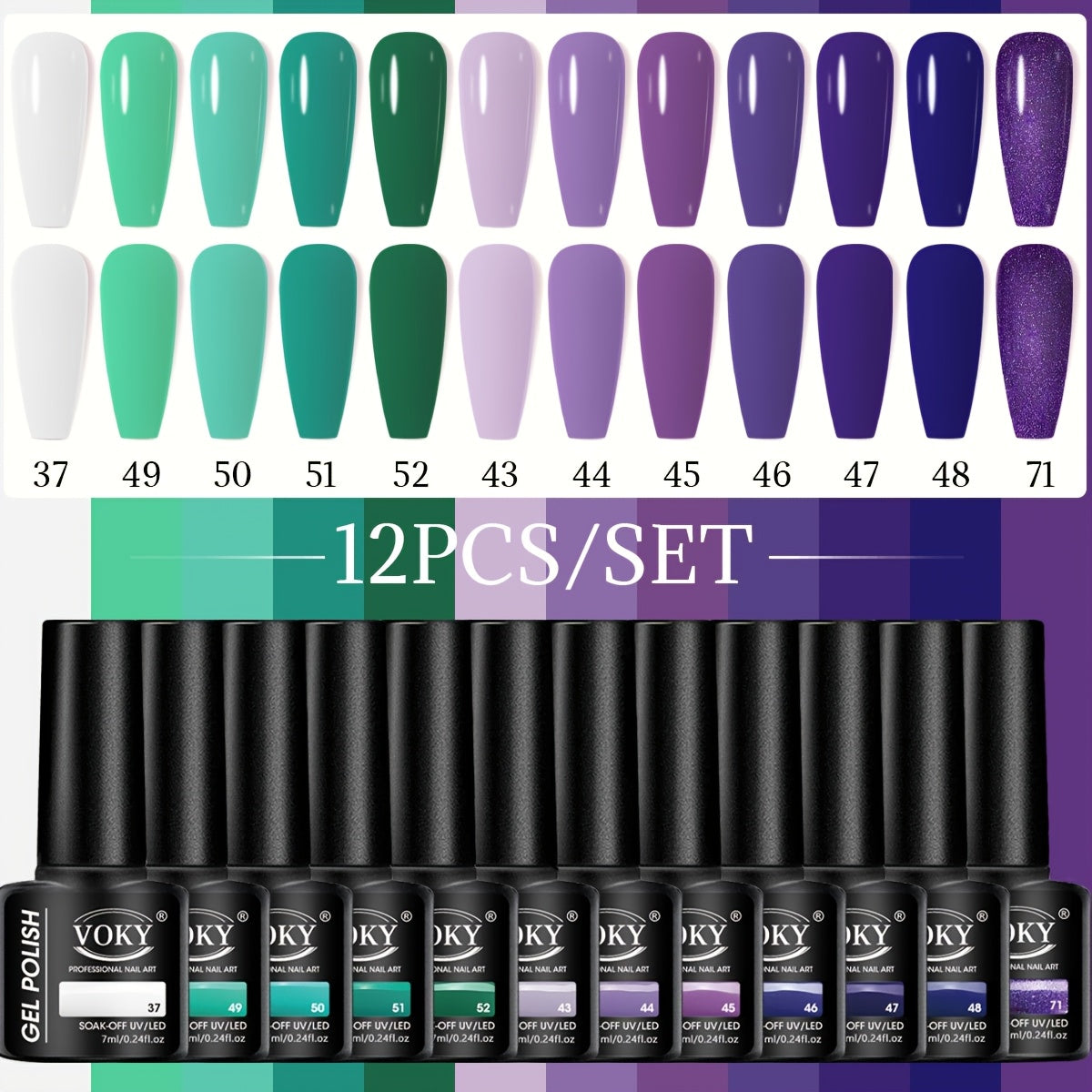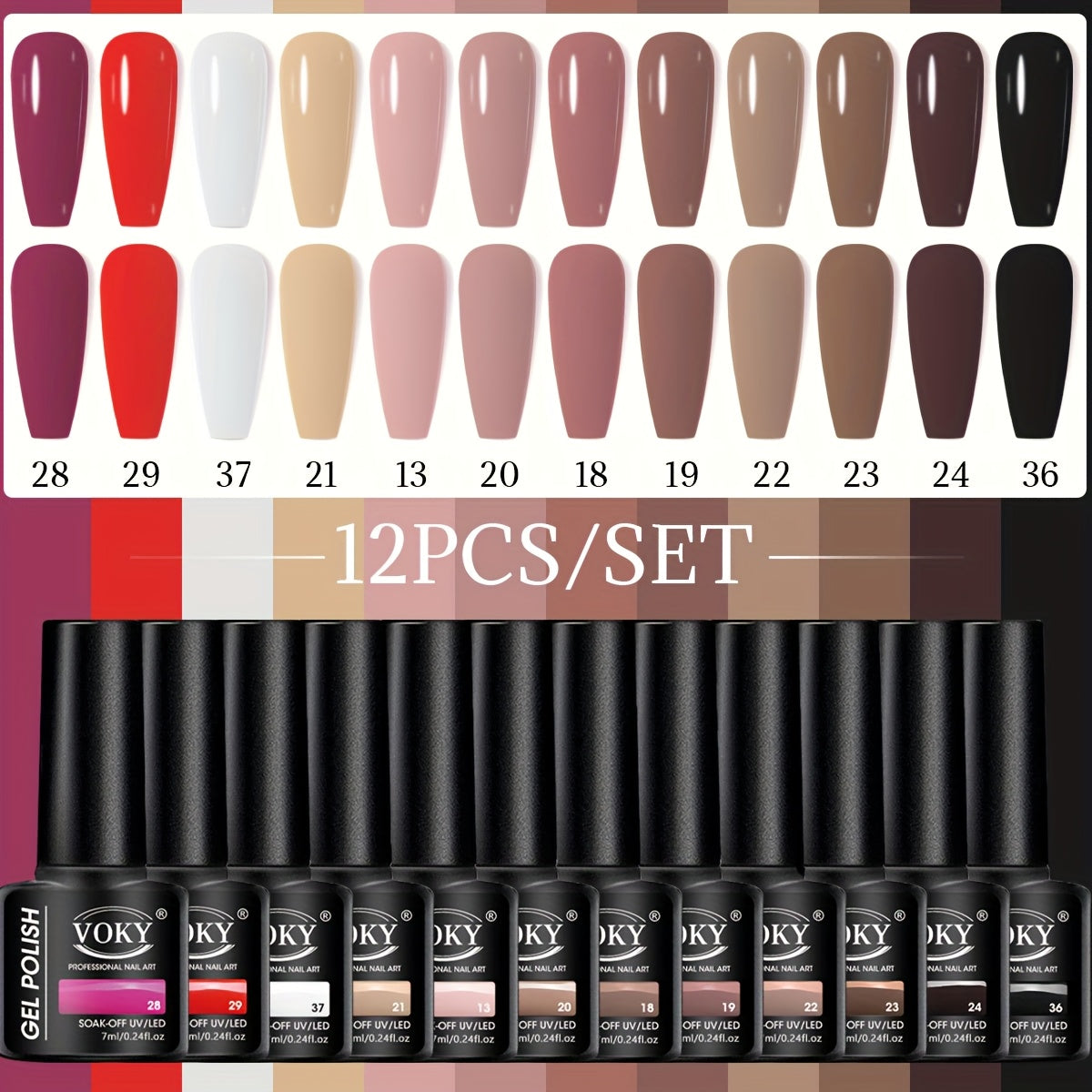 12 ta shisha gel lak uchun to'plam, kuz-qish, uzoq davom etadigan, yarim doimiy, shampanli, gipoallergik