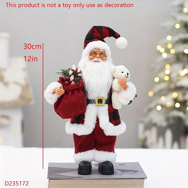 12 dyuymli Santa figurasi qizil va qora kiyimda Rojdestvo uy bezaklari stol usti ko'rgazmasi
