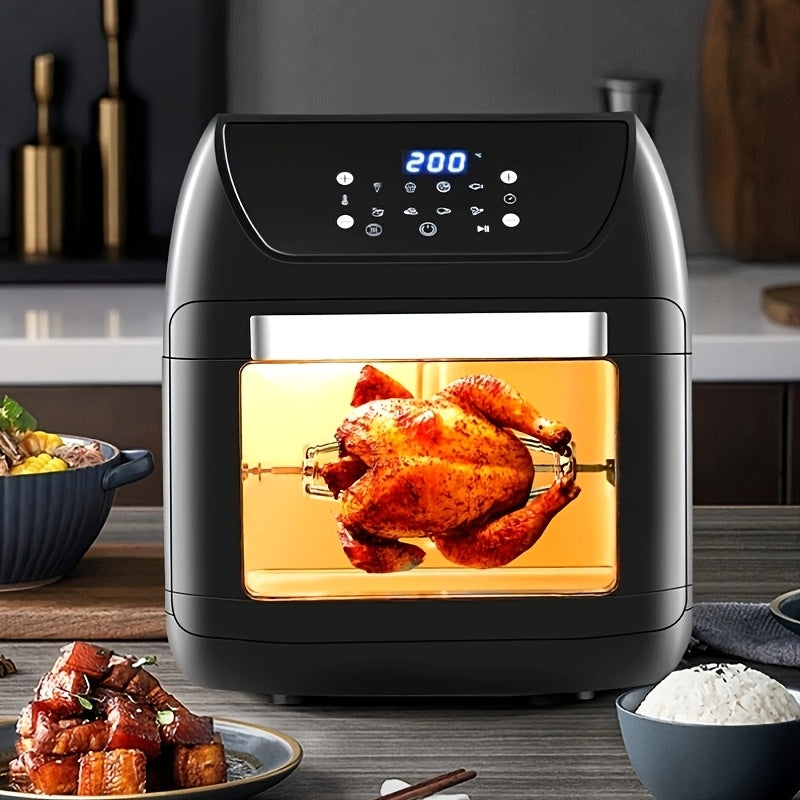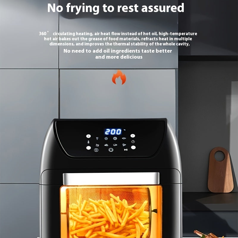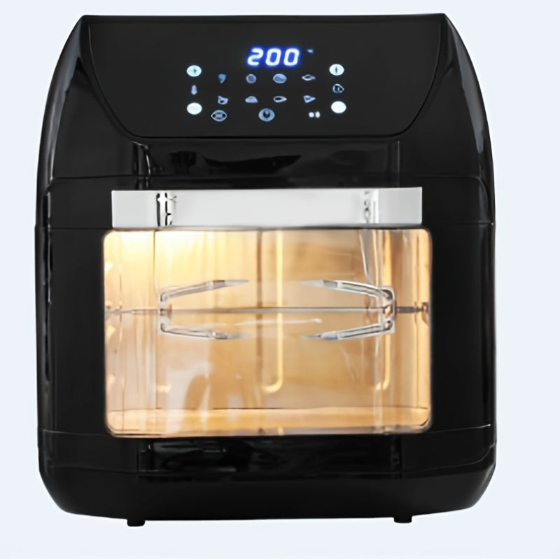 1200ml zanglamaydigan po'latdan yasalgan havo frayer, shaffof oynali LED displey bilan, yopishmaydigan savat