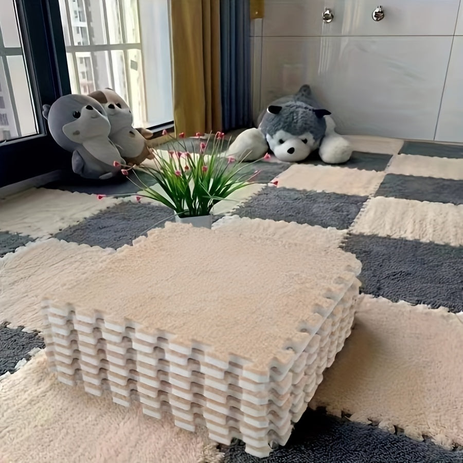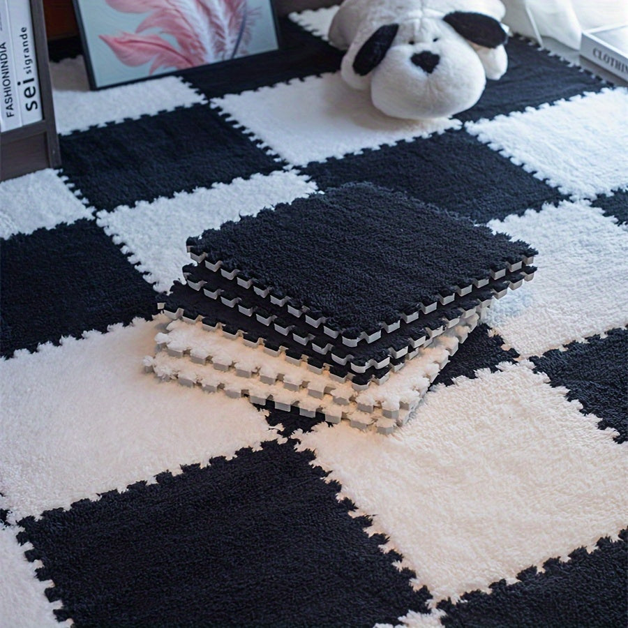 12 dona flocked gilam bo‘laklarini birlashtirish matlari, ichki foydalanish uchun, sirpanishga qarshi, butun polni qoplaydi, 11.81x11.81 dyuym
