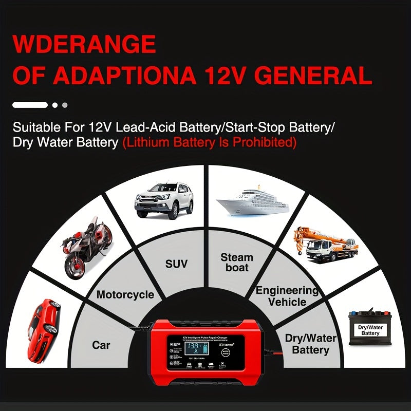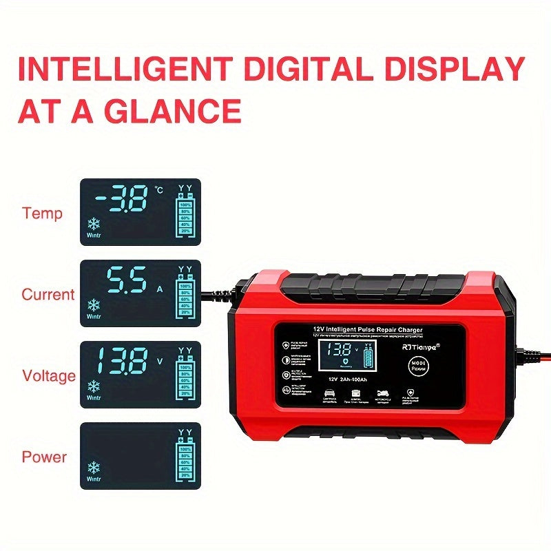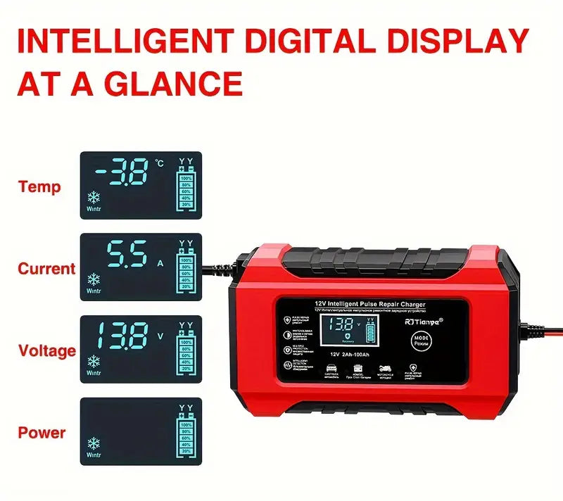 12V 6A Aqlli Batareya Zaryadlagichi Avtomobil, Mototsikl, SUV, Bog' mowersi uchun