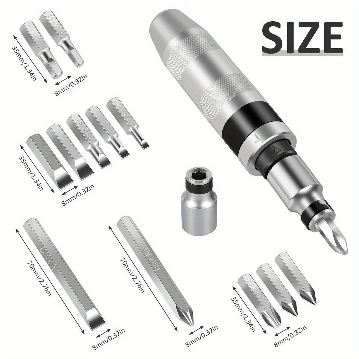 13-Donali ta'sir vintli tornavida to'plami, chisel bo'laklari va vint chiqaruvchi bilan
