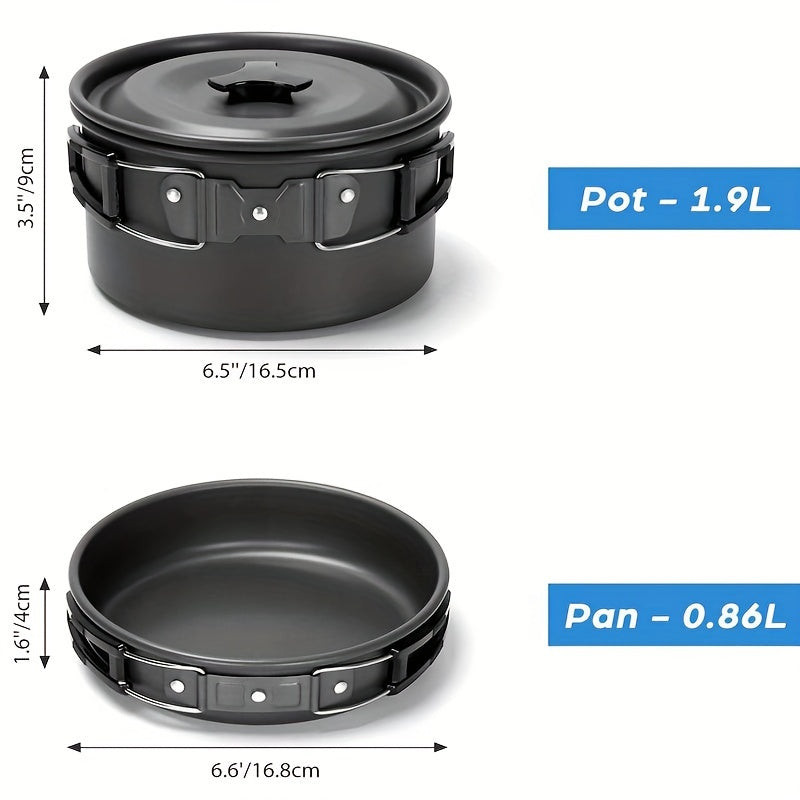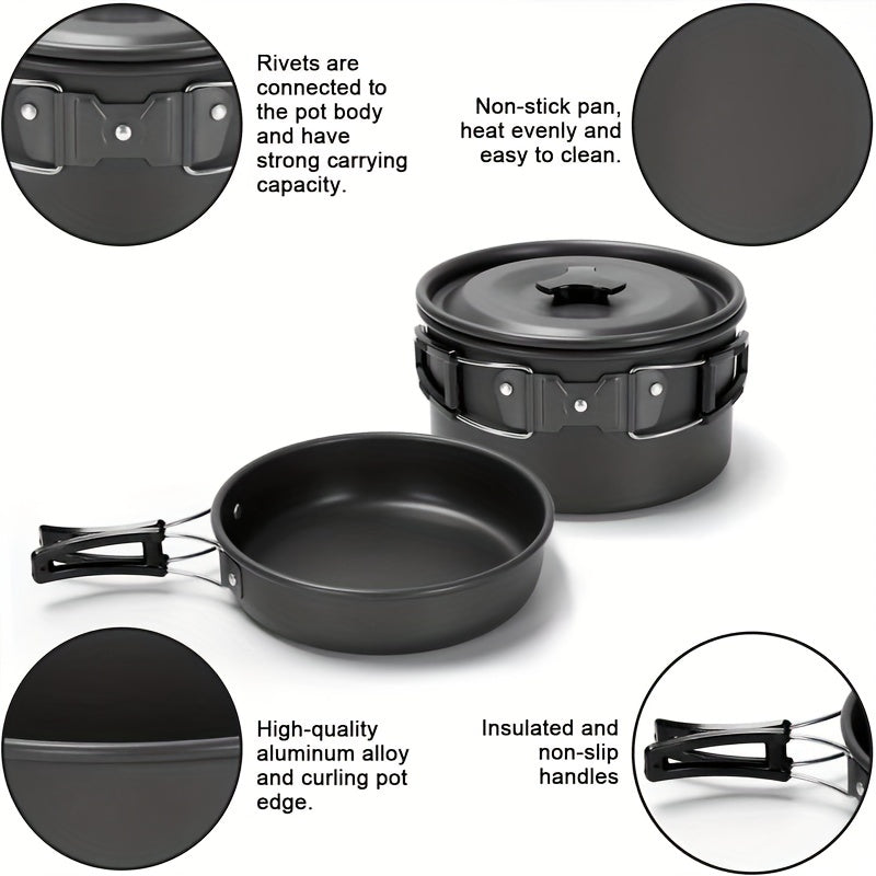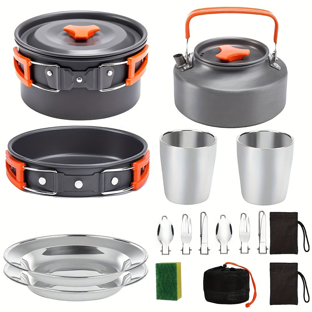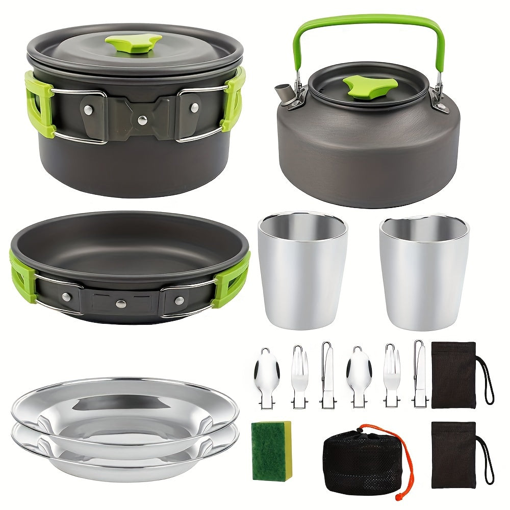 15-Donali sayohat uchun oshxona to'plami, yopishmaydigan alyuminiy alloy, tashqi ovqatlanish uchun