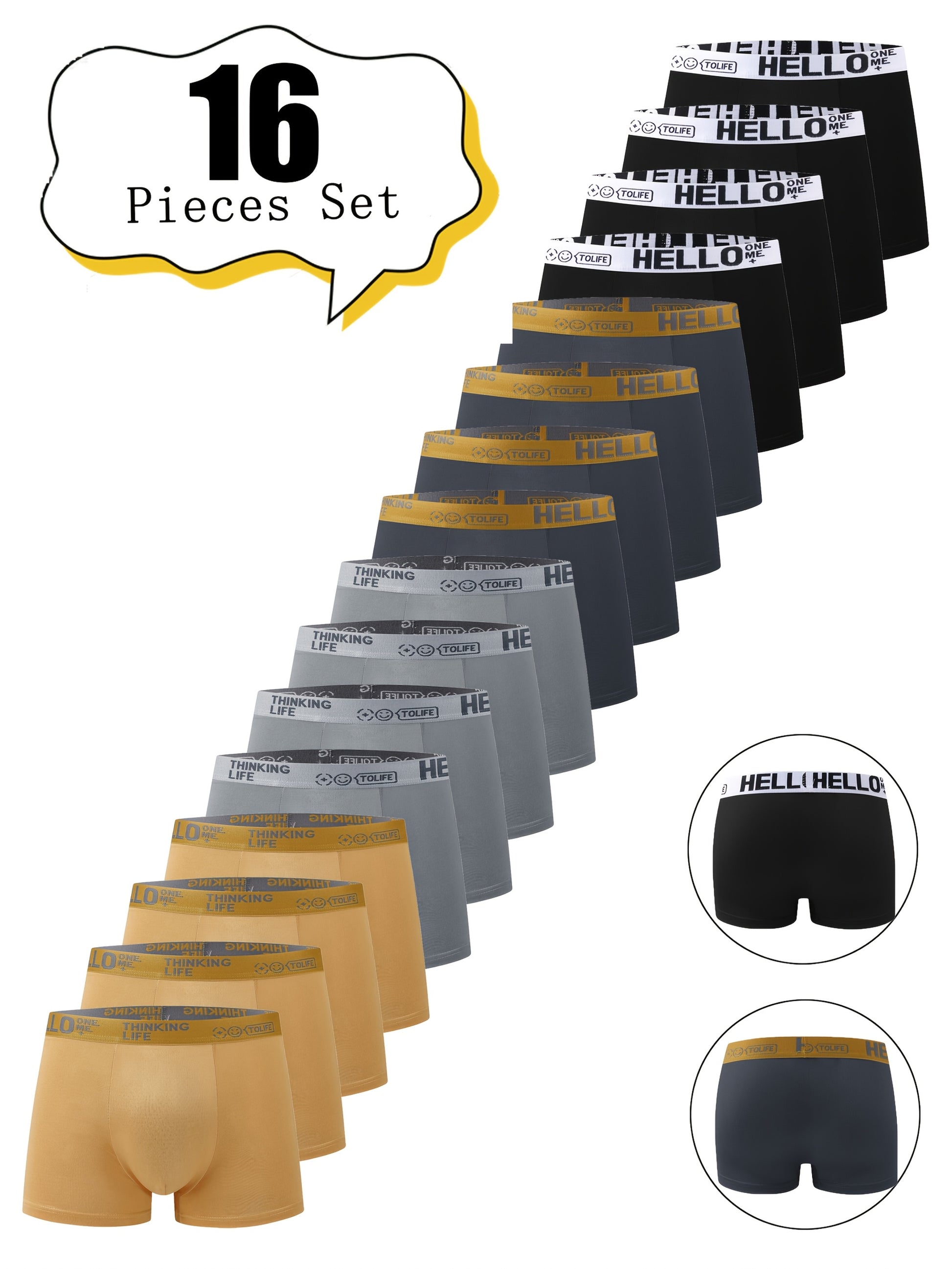 16 erkaklar uchun boxer brief: nafas oladigan, cho'ziluvchan polyester/spandex aralashmasi, elastik belbog' bilan, bir xil ranglar, to'qilgan mato, shaffof emas - tasodifiy kiyim uchun ideal.