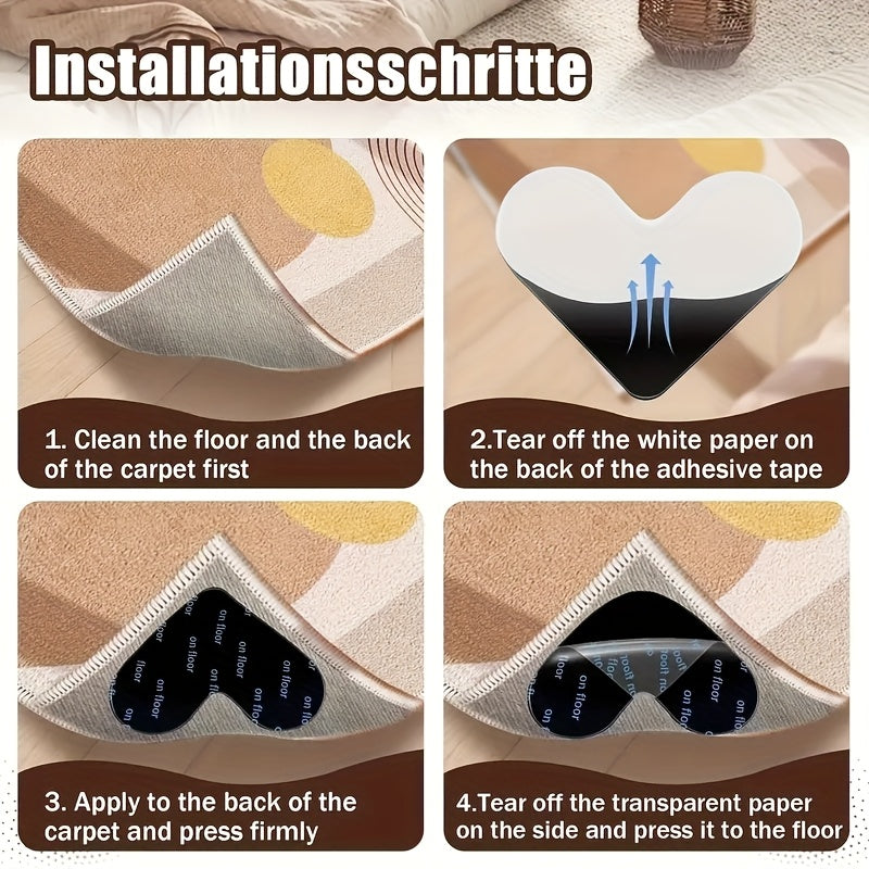 16 dona yopishqoqsiz gilam padlari va gilam stikerlari yog'och va plitka pol uchun