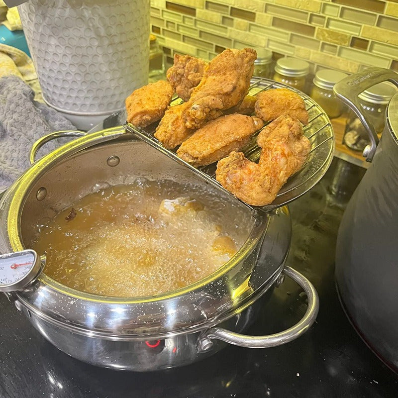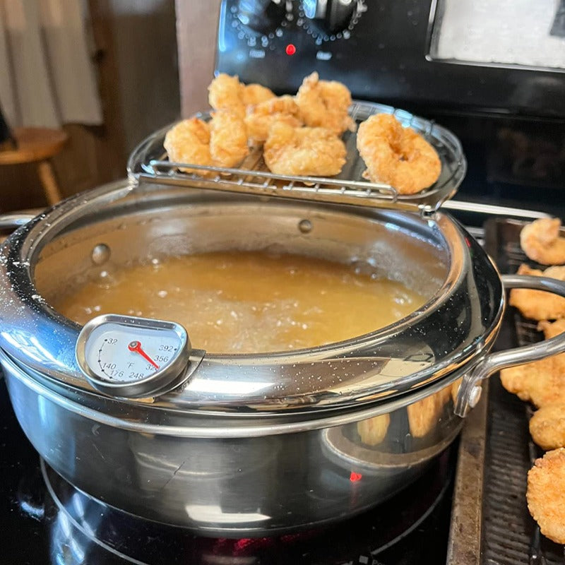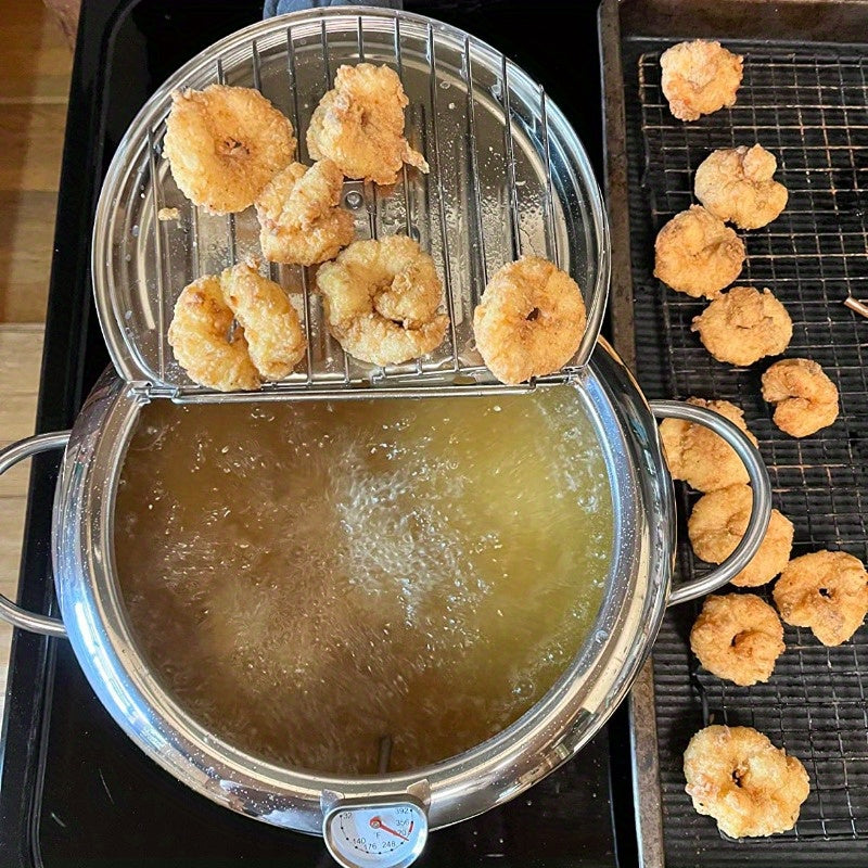 Tuproq qovurish panasi 19.99cm, zanglamaydigan po'lat, termometr bilan qopqog'i, tomchi qopqog'i, friz, qisqichbaqa, qanotlar uchun drip rack