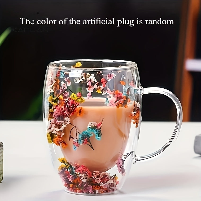 1 dona, 10.14 oz ikki qatlamli espresso stakani, ichida gullar bilan, barcha mavsumlar uchun izolyatsiyalangan, ideal tug'ilgan kun sovg'asi.