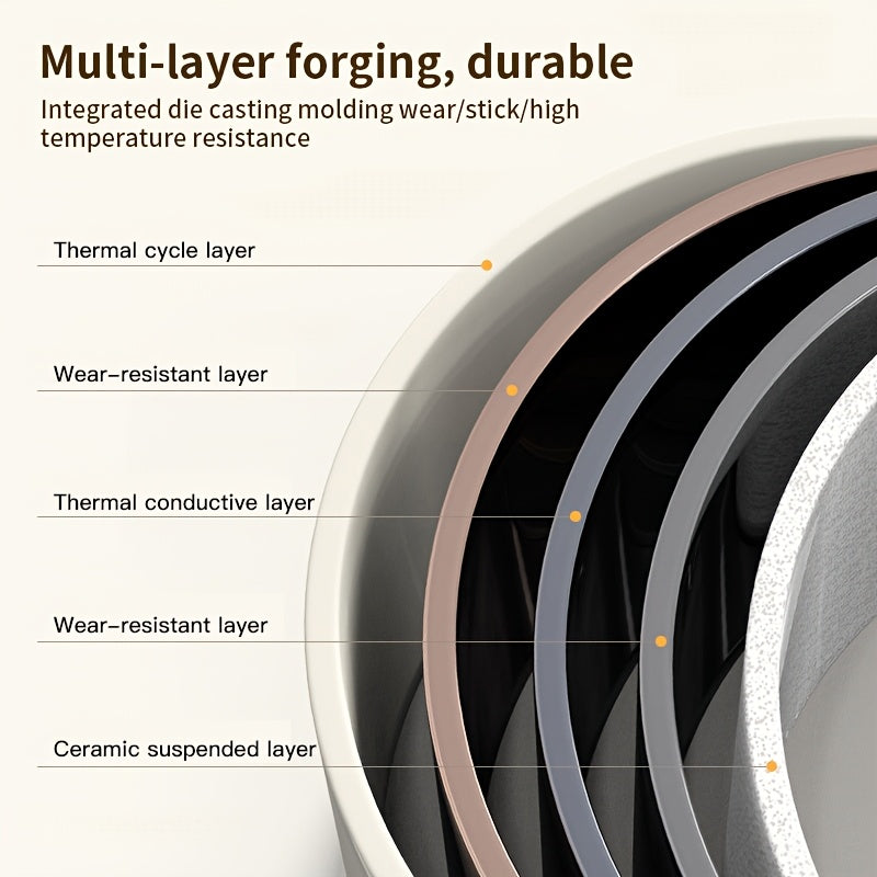 Qattiq materialdan yasalgan 5-qavatli keramika yopishmaydigan qovurilgan panjara, olib tashlanadigan tutqichli qopqoq bilan
