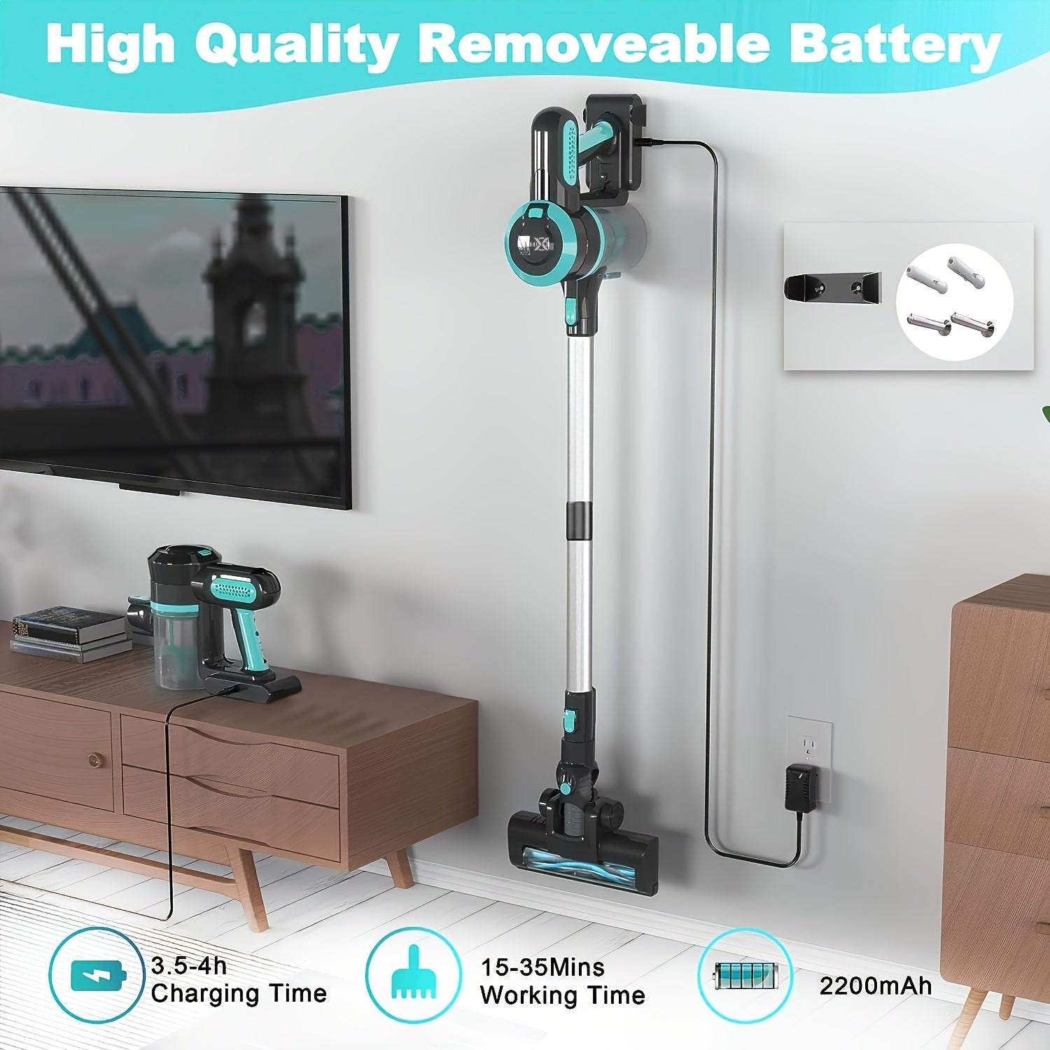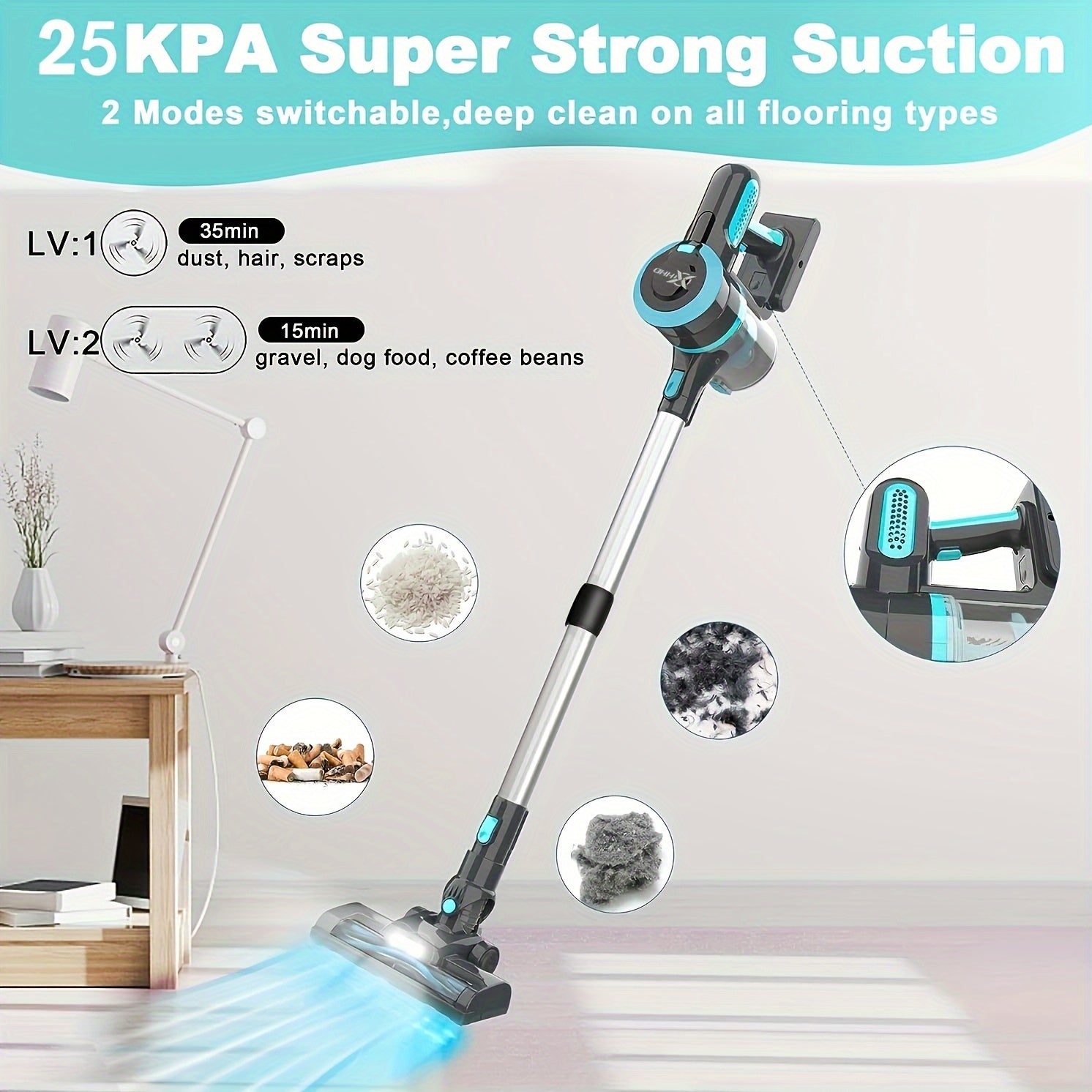 Kabelsiz tayoqcha changyutgich 25Kpa tortish kuchi 180° egiluvchan tayoqchali, qayta to'ldiriladigan, yog'och pol uchun, it sochlari uchun
