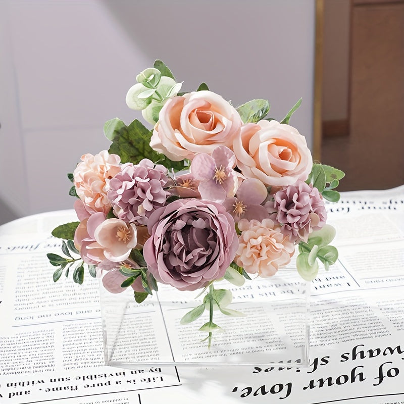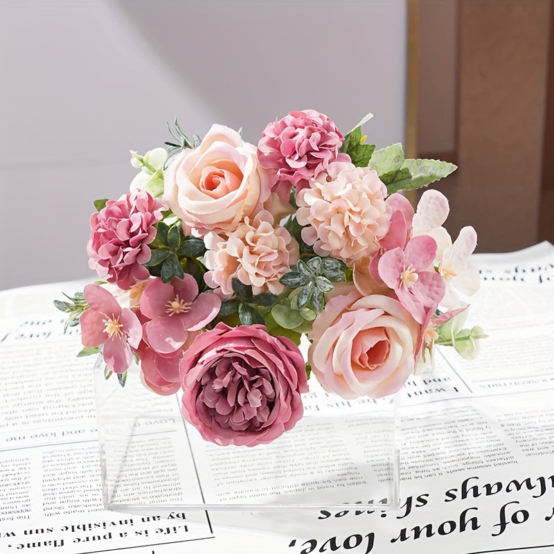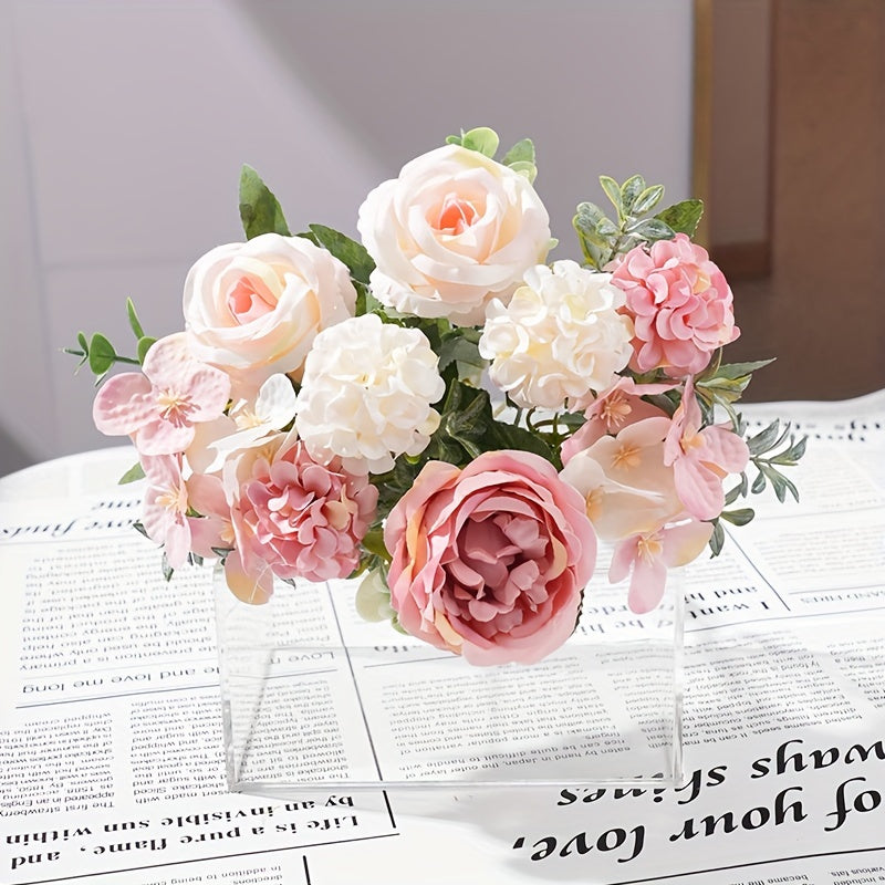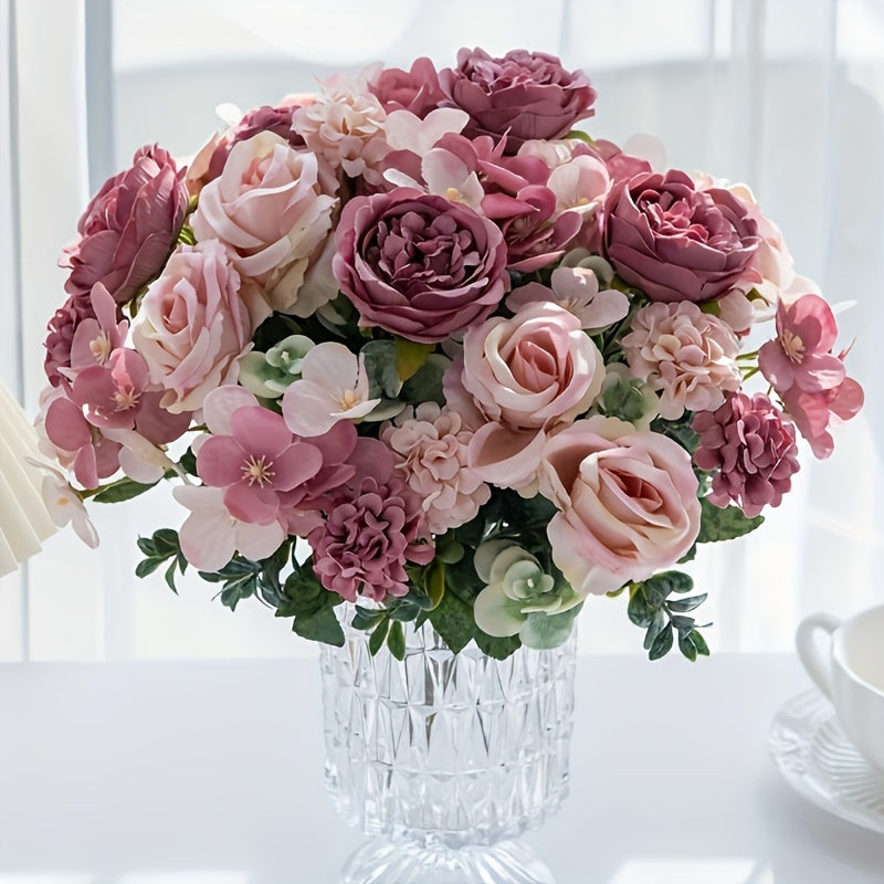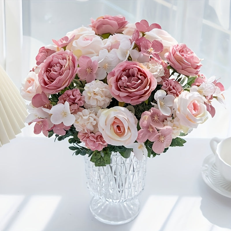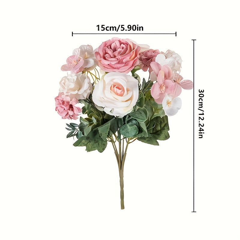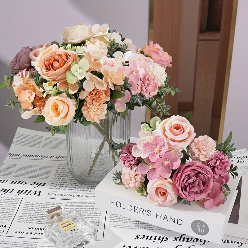 Sun'iy gul buketi, pushti, apelsin, bej, oq, to'ylar, partiyalar, uy bezatish uchun