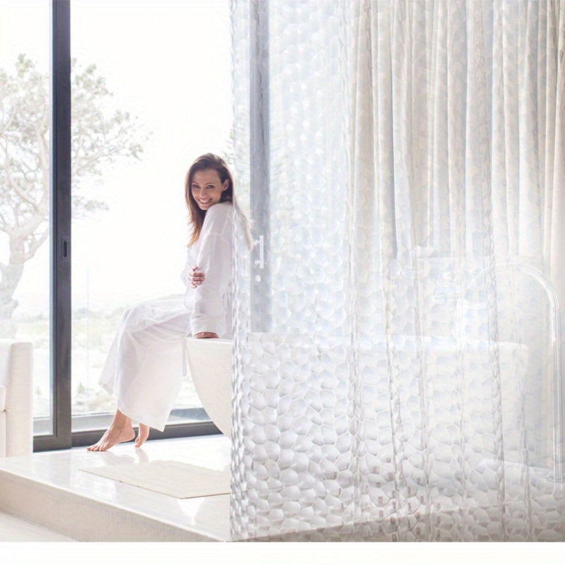 1 dona EVA dush pardasi, 12 ta tutqich bilan, suv o'tkazmaydigan va zamonaviy hammom bezaklari va uy bezaklari uchun aksessuarlar.