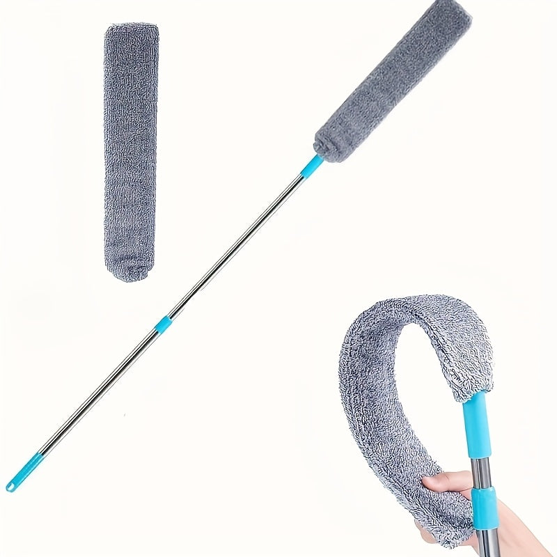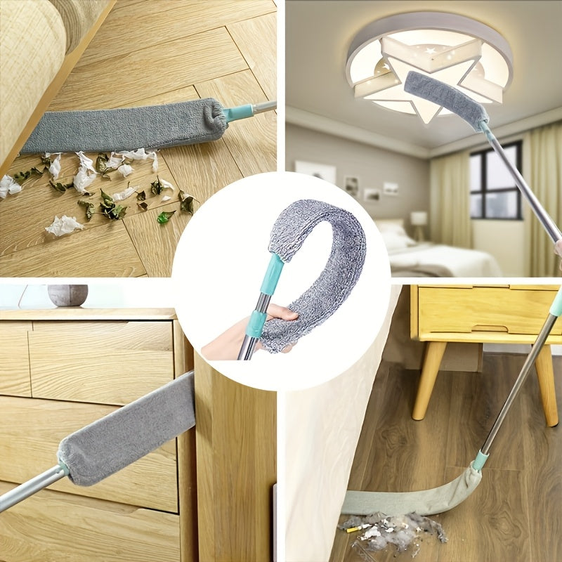 1 dona uzun tutqichi bo'lgan moslashuvchan tekis chang cho'tkasi, plastik, yotoq osti va mebel bo'shliqlarini tozalash uchun, qayta ishlatiladigan elektrostatik chang tozalash asbobi bilan.
