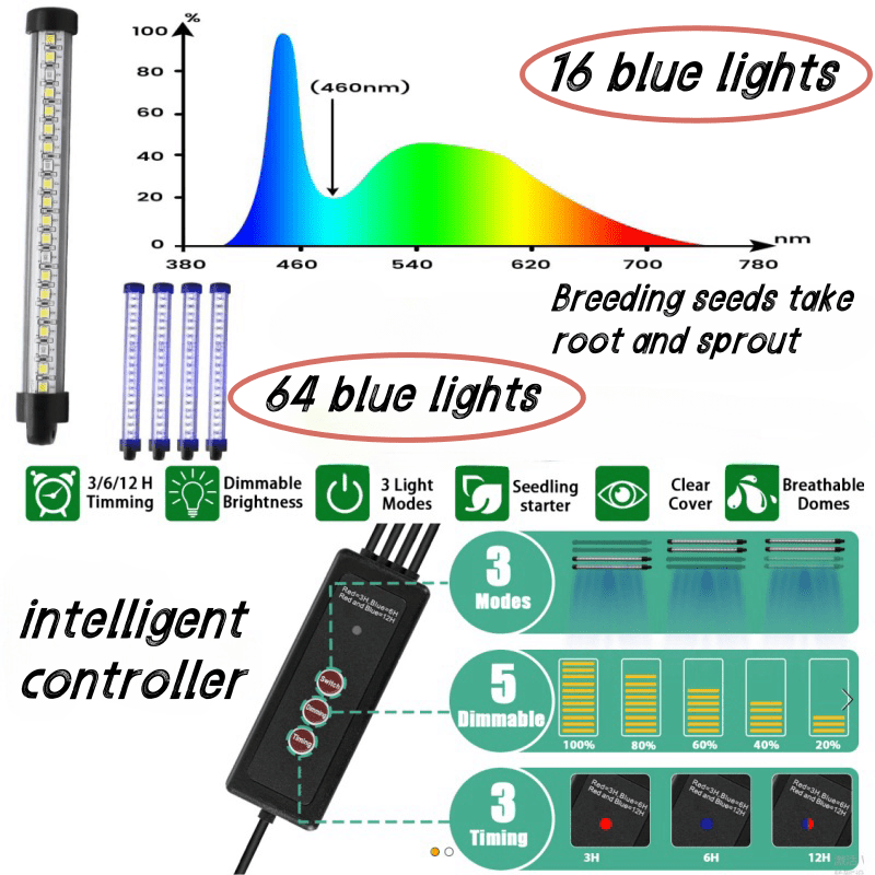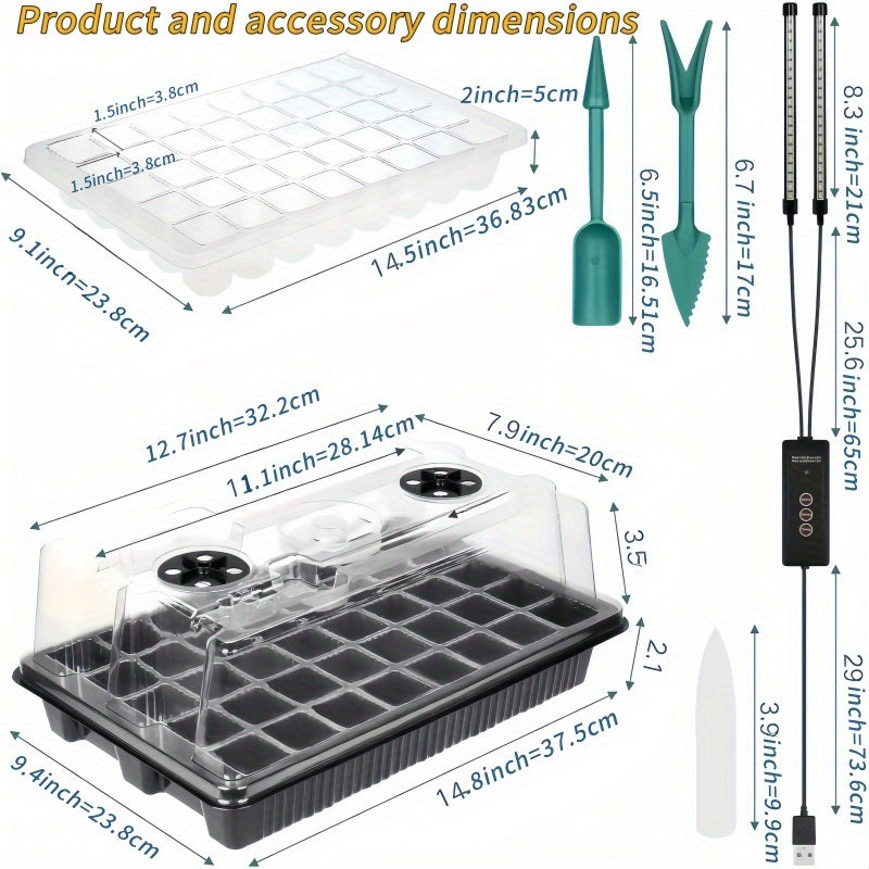 1 dona Issiqxona Ustasi Urug‘larni Boshlash To‘plami LED Chiroq Yoritgichlari bilan, USB Quvvatlanadi, Moslashtiriladigan Yorqinlik, Namlik, Vaqtni Boshqaruvchi, Batareya Kerak emas.