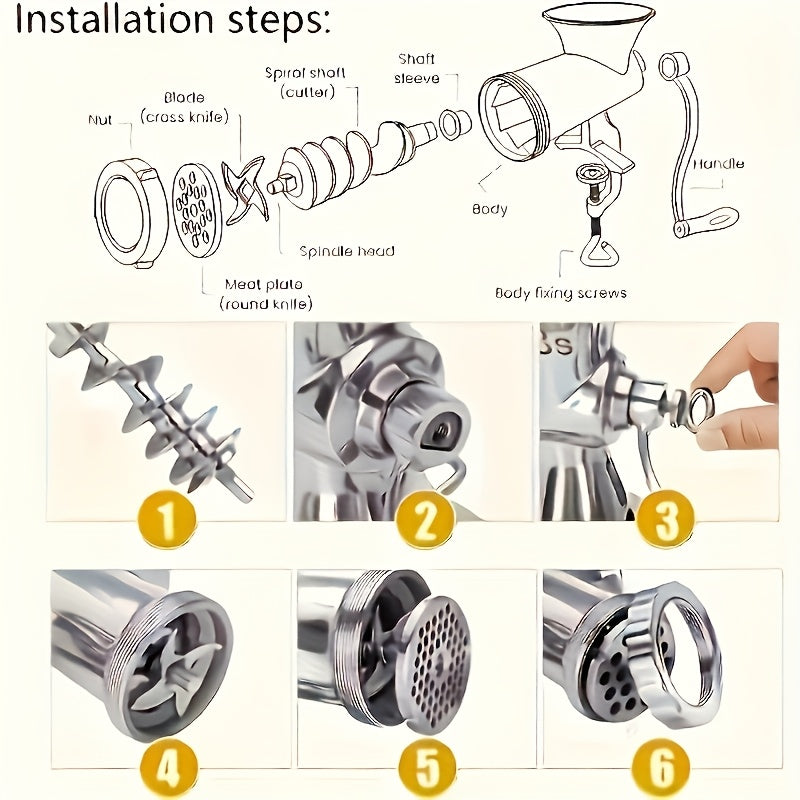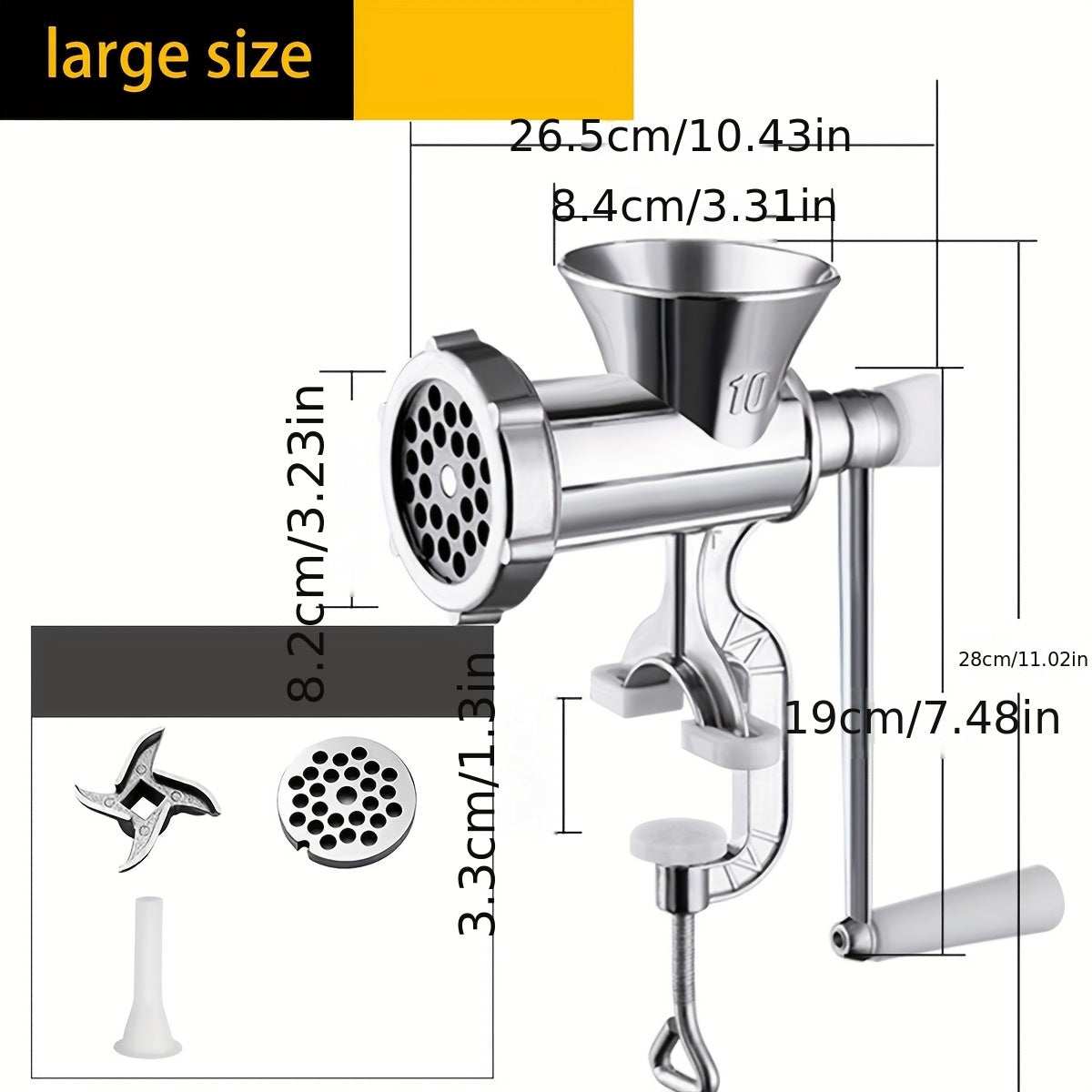 1 dona Katta quvvatli qo'lda go'sht maydalagich va kolbasa tayyorlagich - Rostdan po'lat, 10 RPM, Elektr energiyasi talab qilinmaydi, Tanlov uchun aksessuarlar, maydalangan go'sht va kolbasa uchun ideal, Uy sharoitida foydalanish uchun