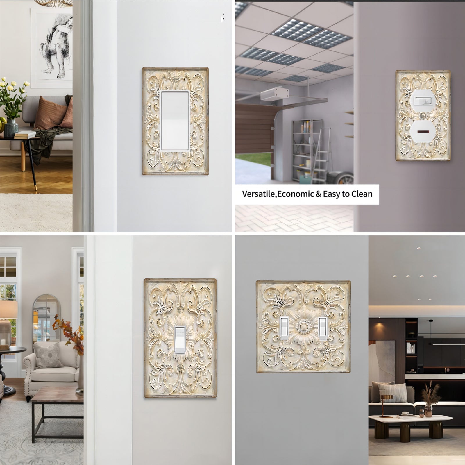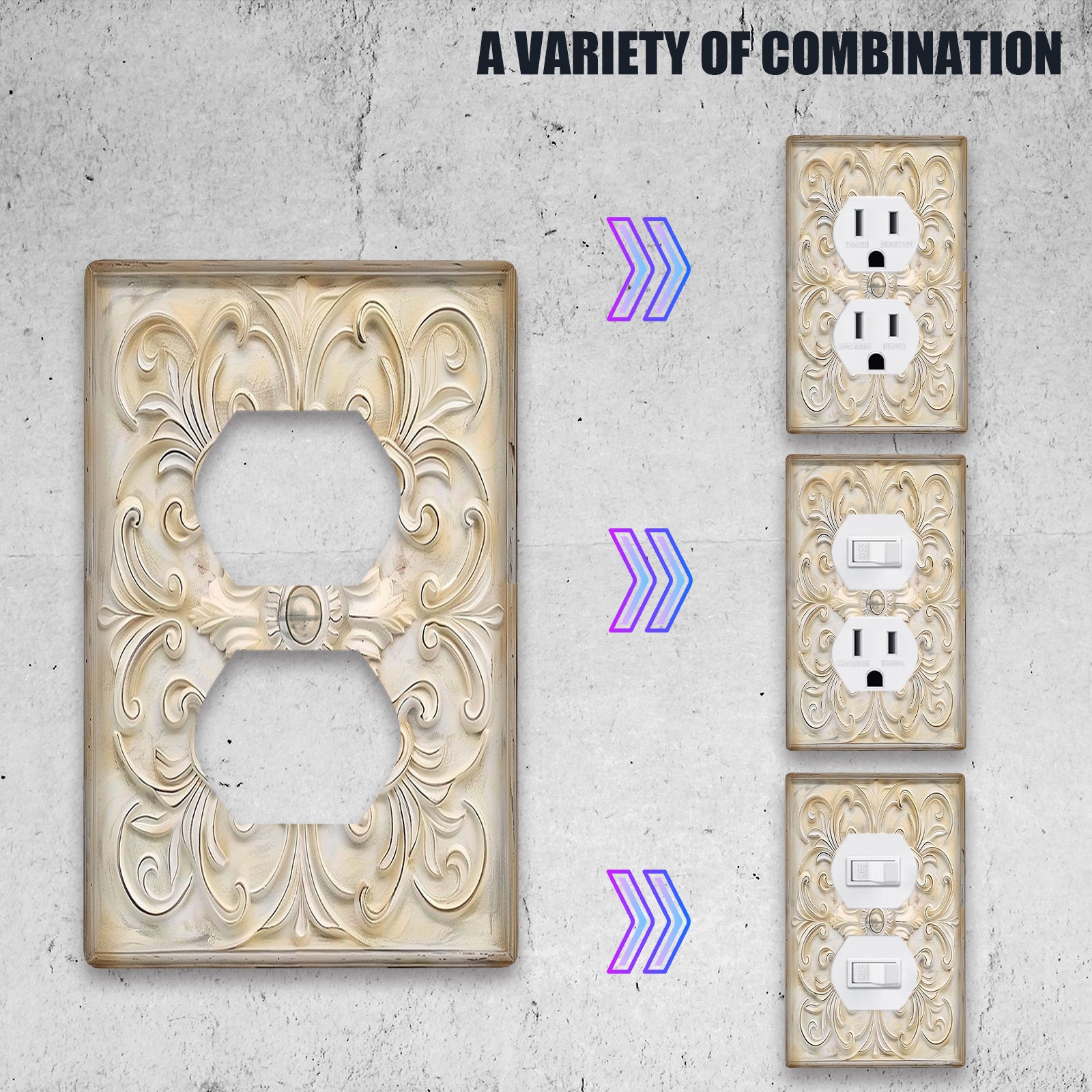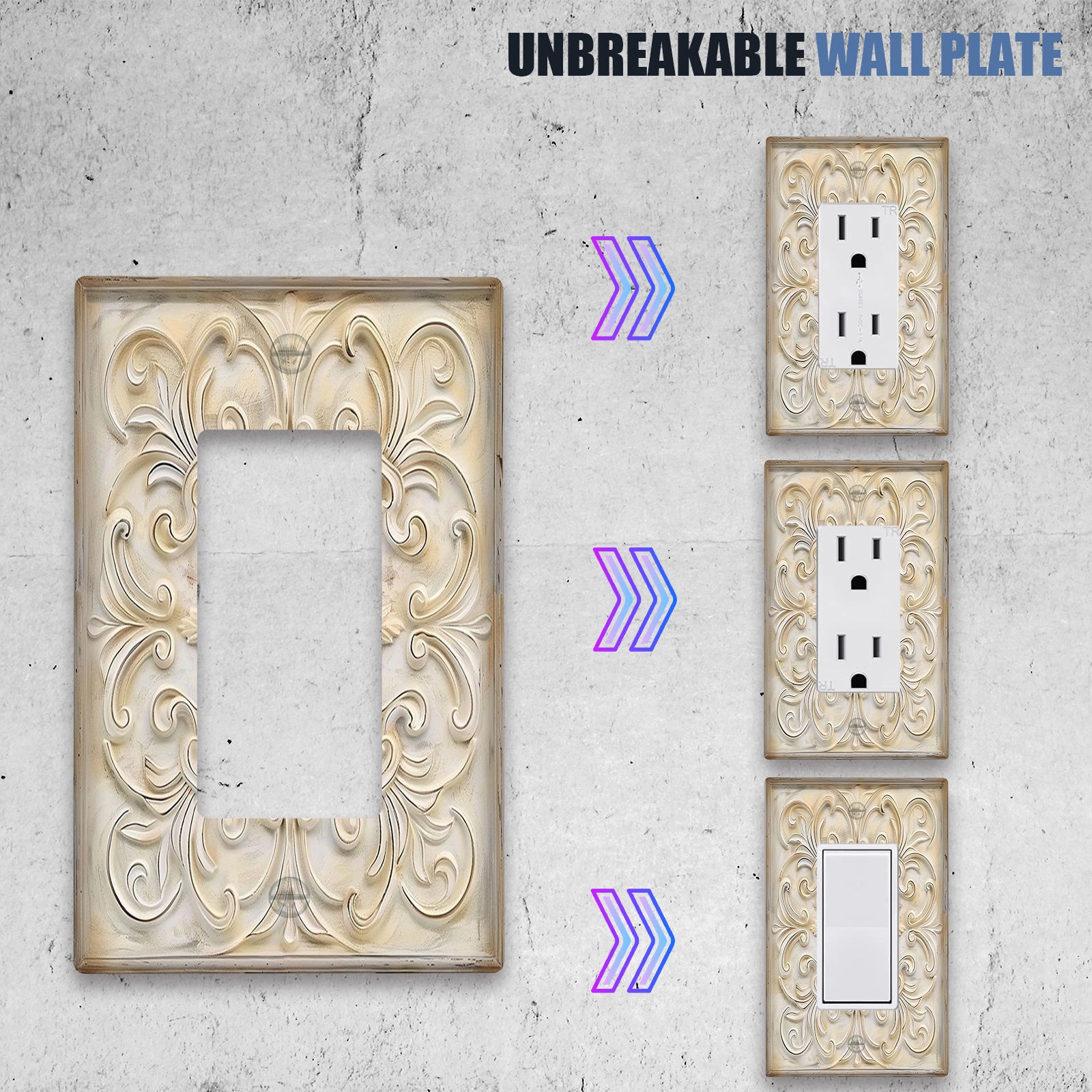 1 dona IVORY Frantsuz naqshidagi dekorativ yorug'lik kalit qopqog'i uchun, 1-gang/2-gang devor plitkasi - Yotoqxona va oshxona uchun san'atli uy dekoratsiyasi, kalit qopqog'iga san'atiy tuyg'u qo'shadi.
