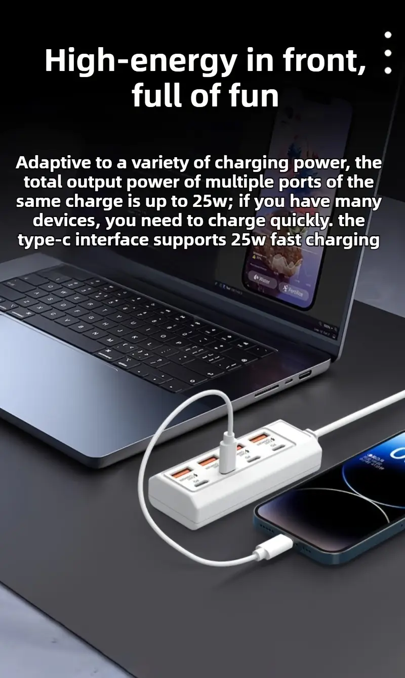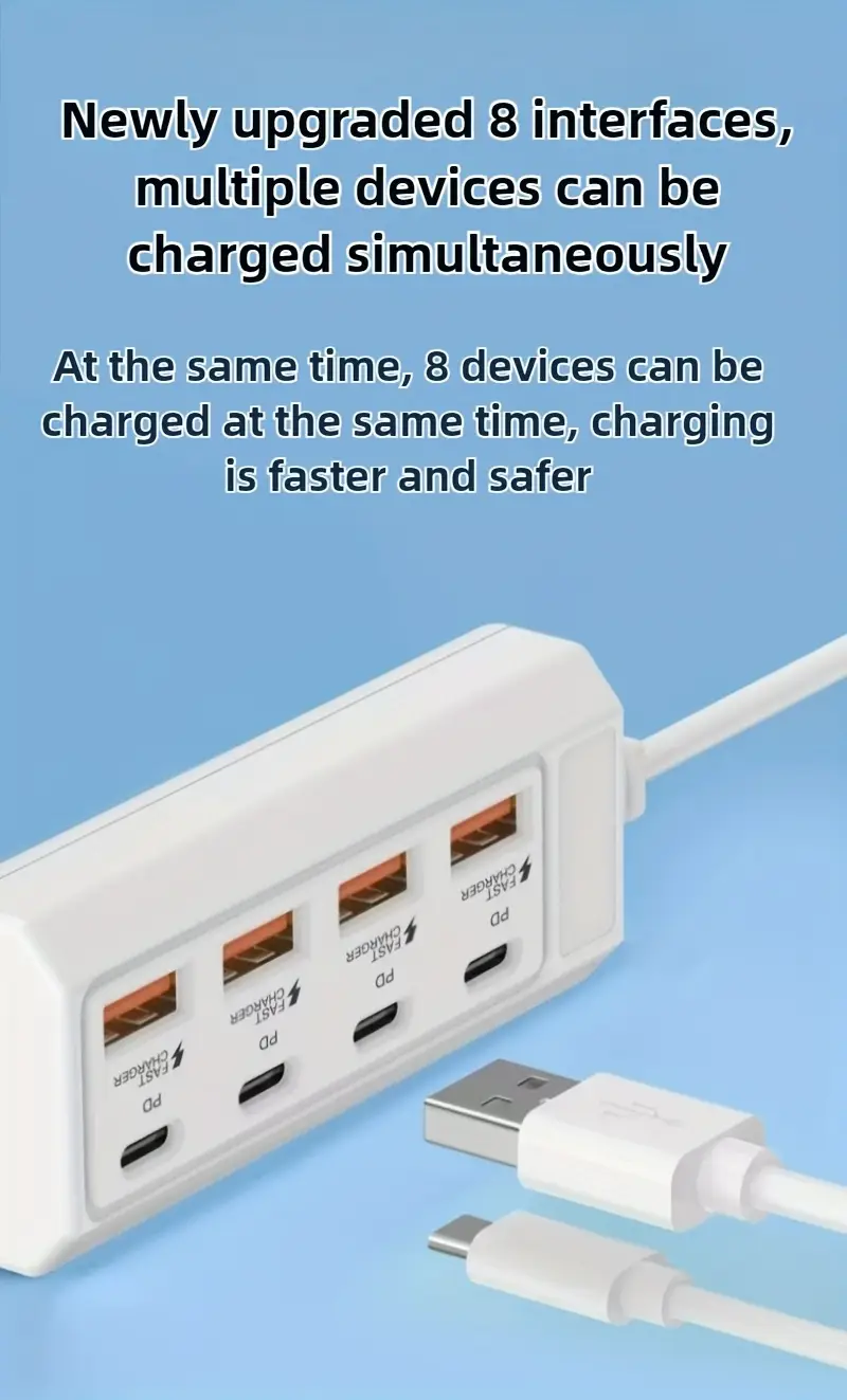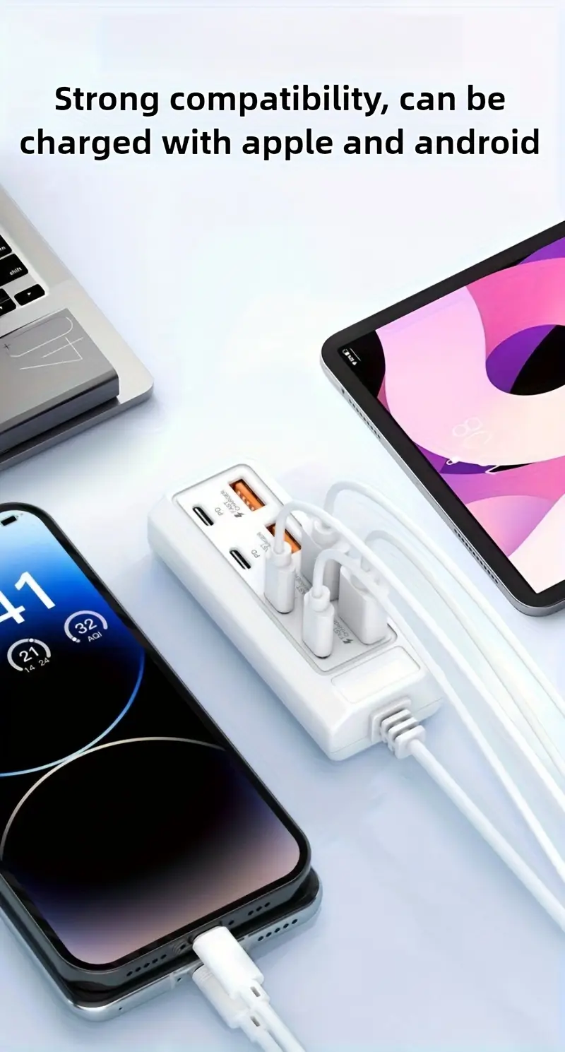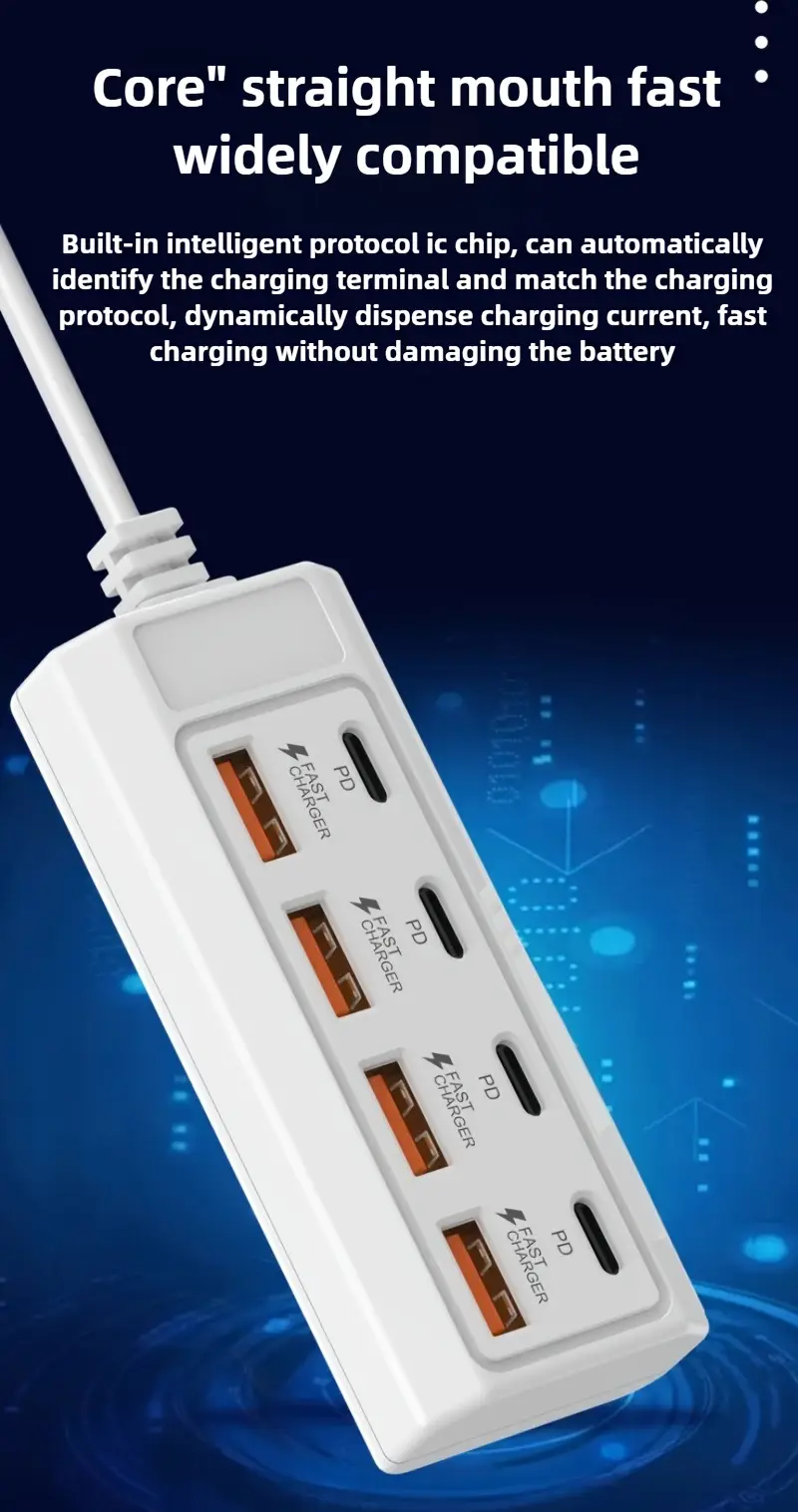 1 dona 4 USB/ 4 PD bilan ko'p teshikli rozetka, Apple va Android qurilmalari uchun mos keladi.