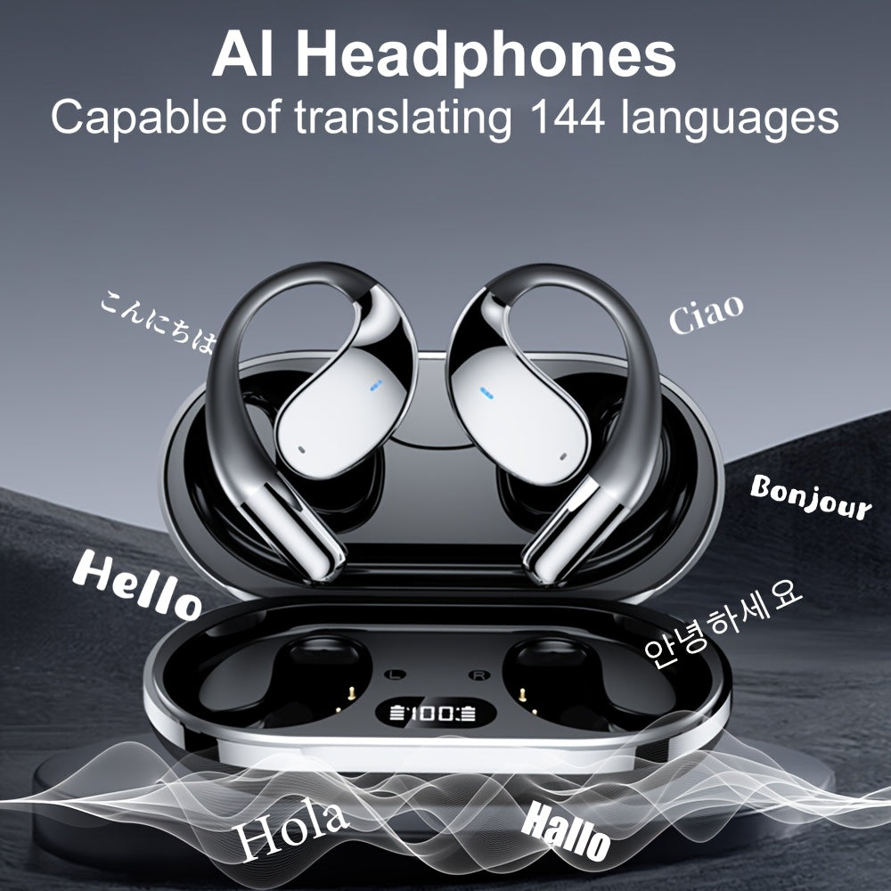 1 dona OURLIFE AI Aqlli Tarjima Quloqliklari 144 tilni qo'llab-quvvatlash, raqamli displey, uzoq muddatli batareya, chuqur bass, qo'ng'iroqni boshqarish va qayta zaryadlanadigan litiy-polimer batareyasi bilan.
