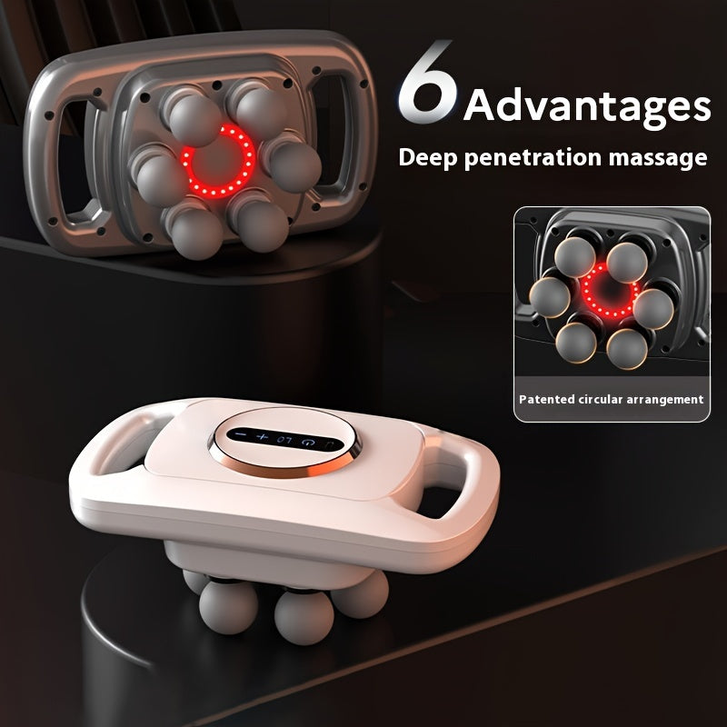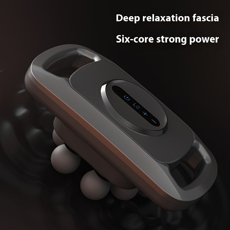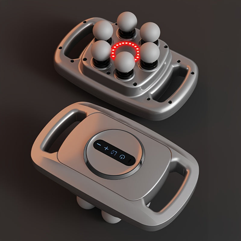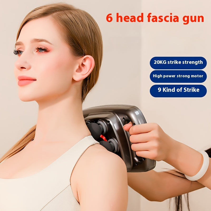 1 dona Professional 6-boshli zarba massaj quroli, LCD displey bilan, USB orqali zaryadlanadigan, 9 ta intensivlik darajalari, jim ishlash - To'liq tana massaji uchun mos.
