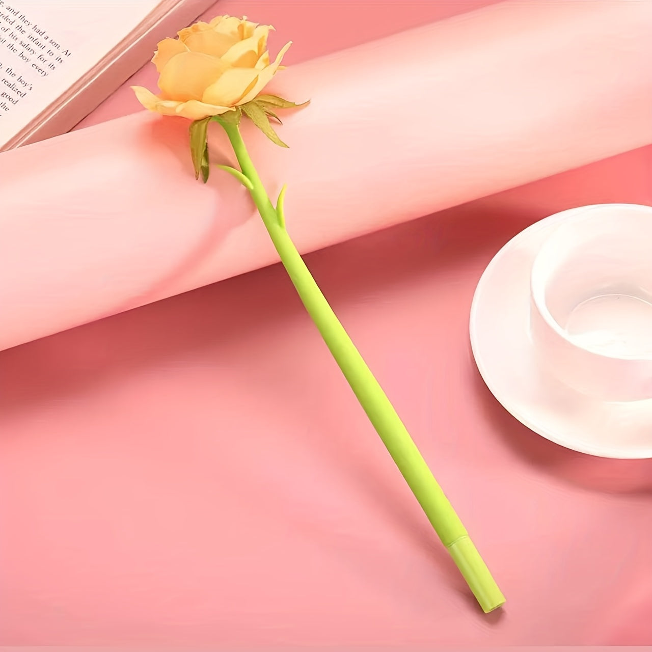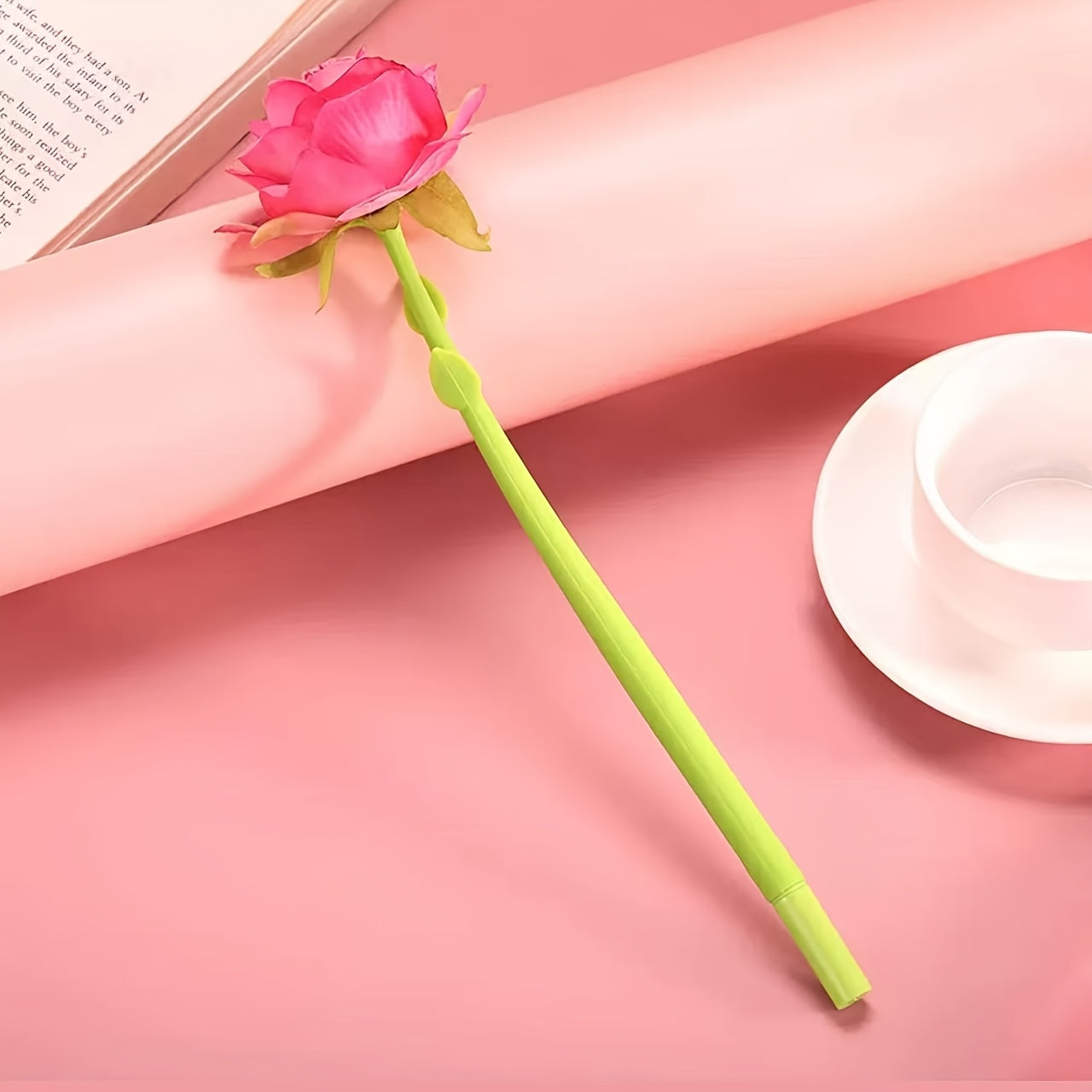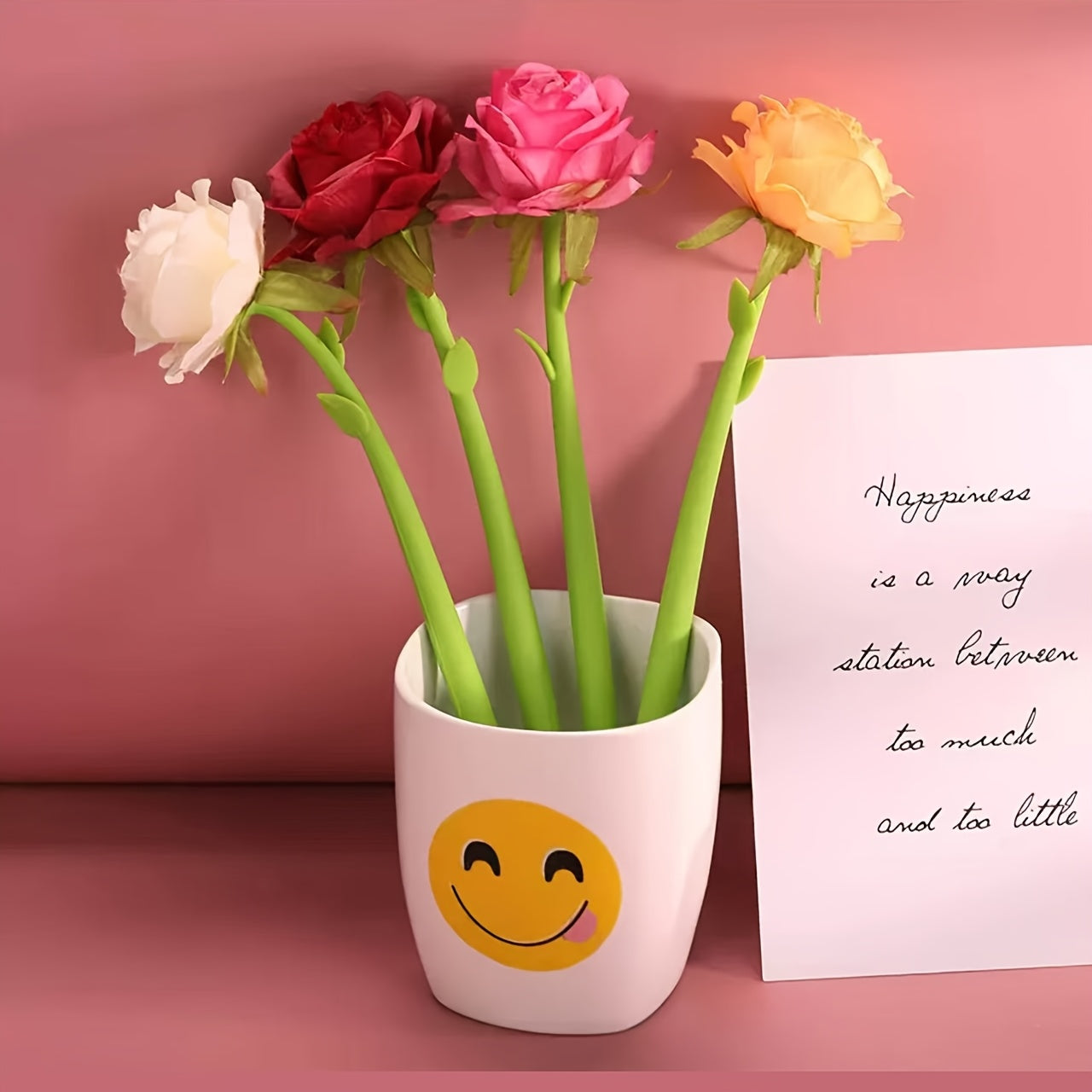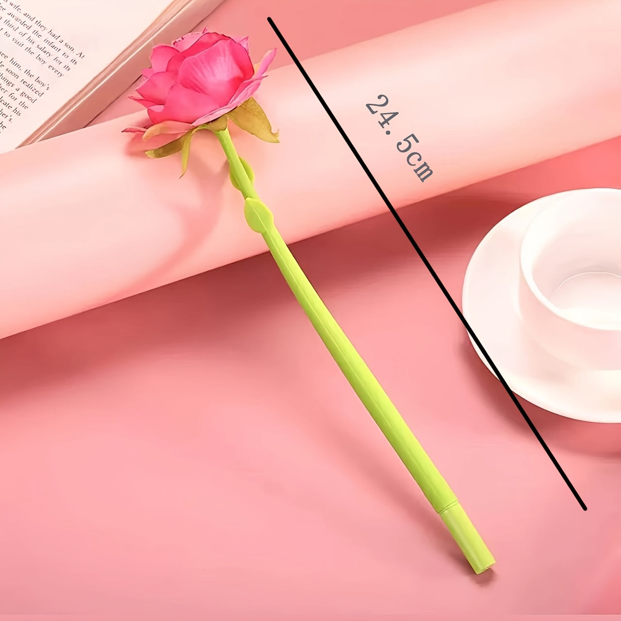 1 dona Atirgul Gel Qalam to'plami, 5 dona, 0.5 mm qora siyohli to'ldiruvchi qalam, silikon gullar dizaynida - O'qituvchilar kuni yoki Sevgi kuni uchun sovg'a berish uchun mukammal.