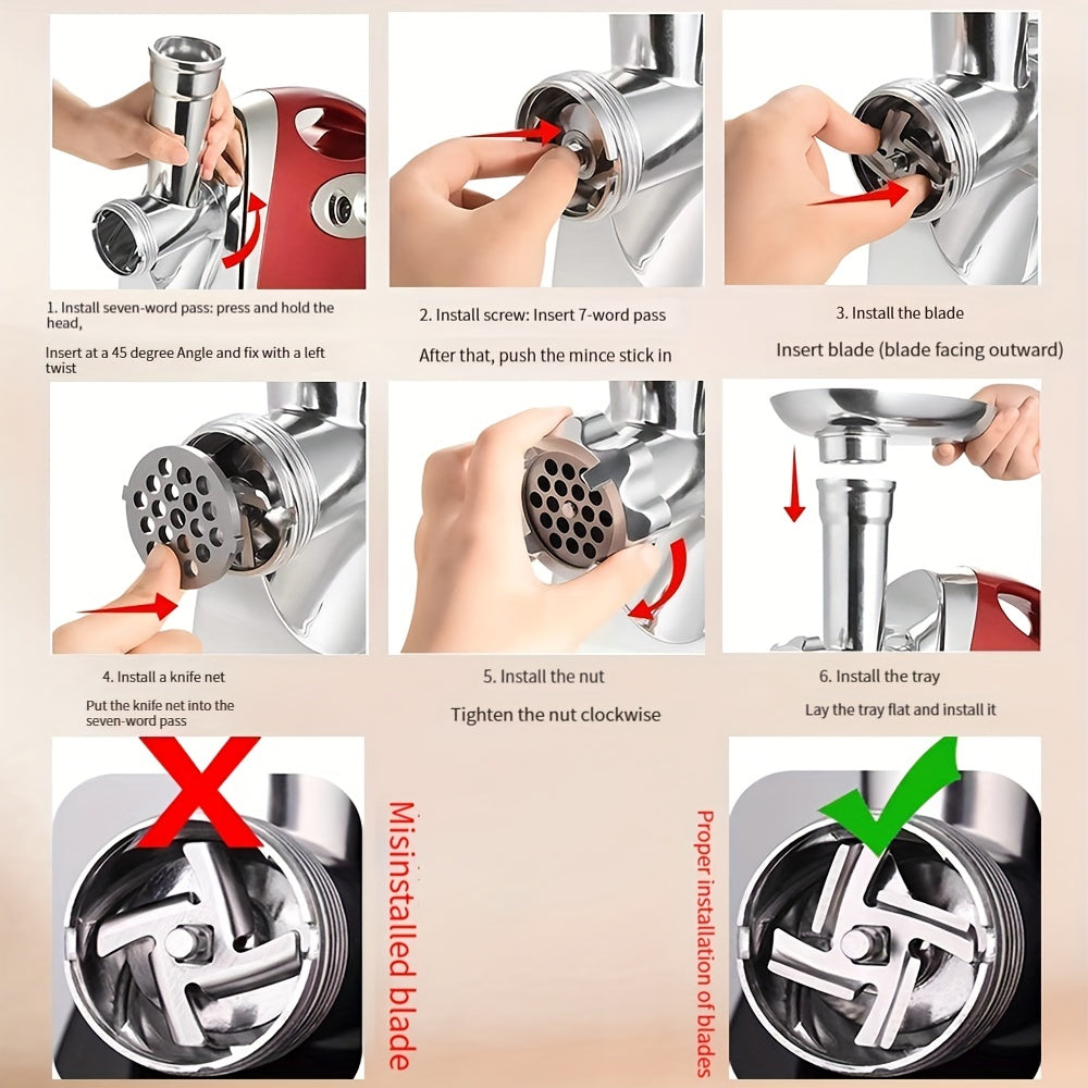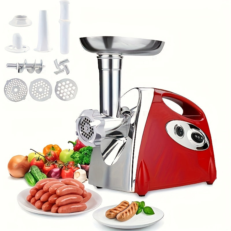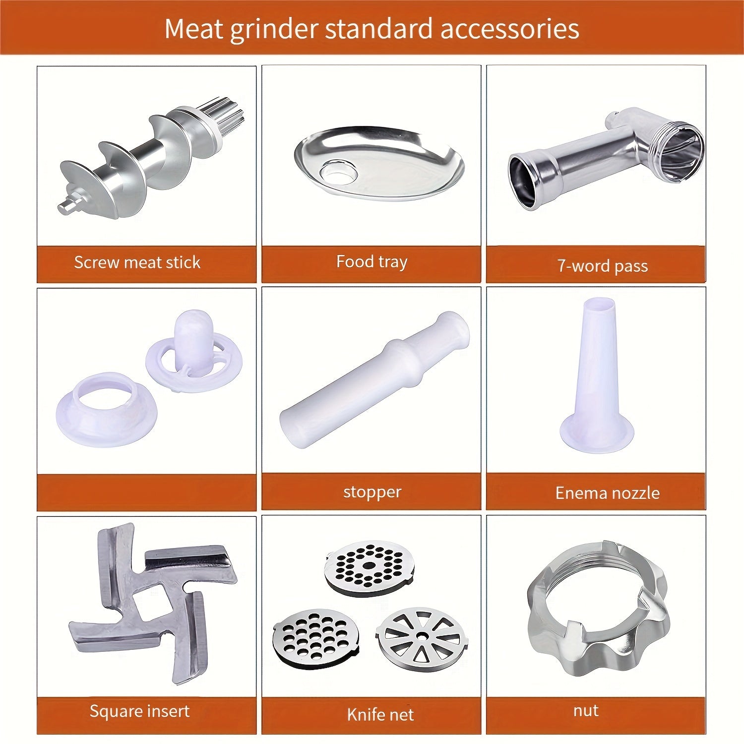 1 dona Elektrik go'sht maydalagich, 3 ta maydalash plitasi, kolbasa to'ldirgich, oziq-ovqat bosgich, aralashtirish va maydalash uchun qo'shimchalar, Kubbe to'plami - 220-240V EU Plug.