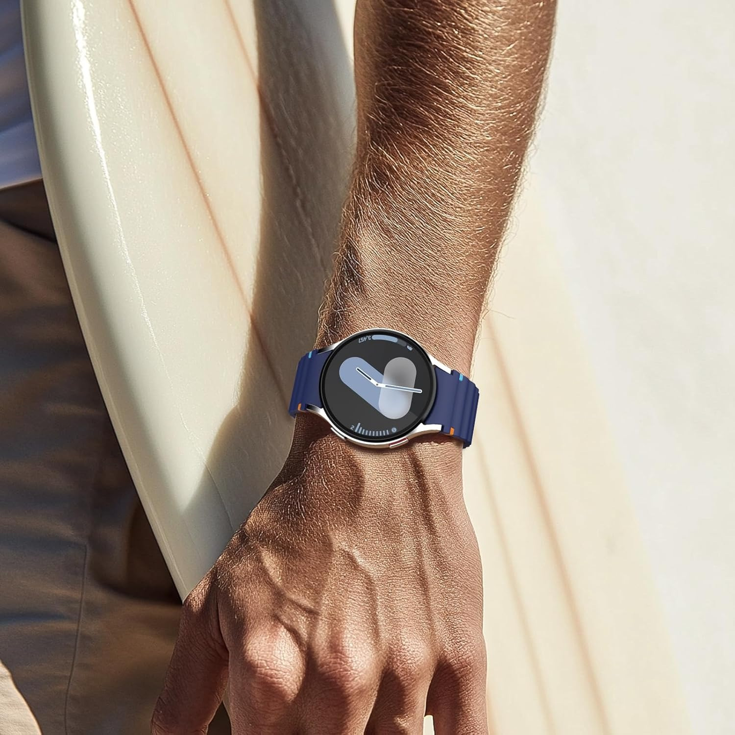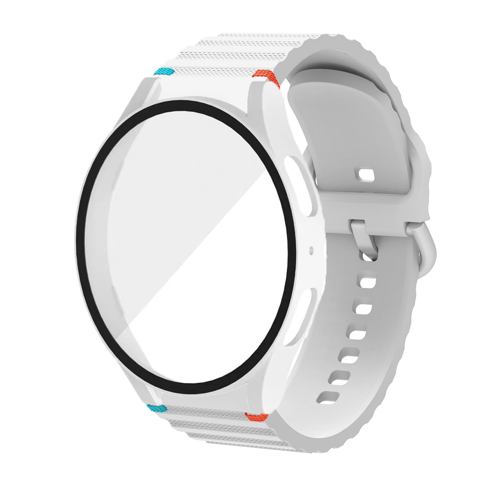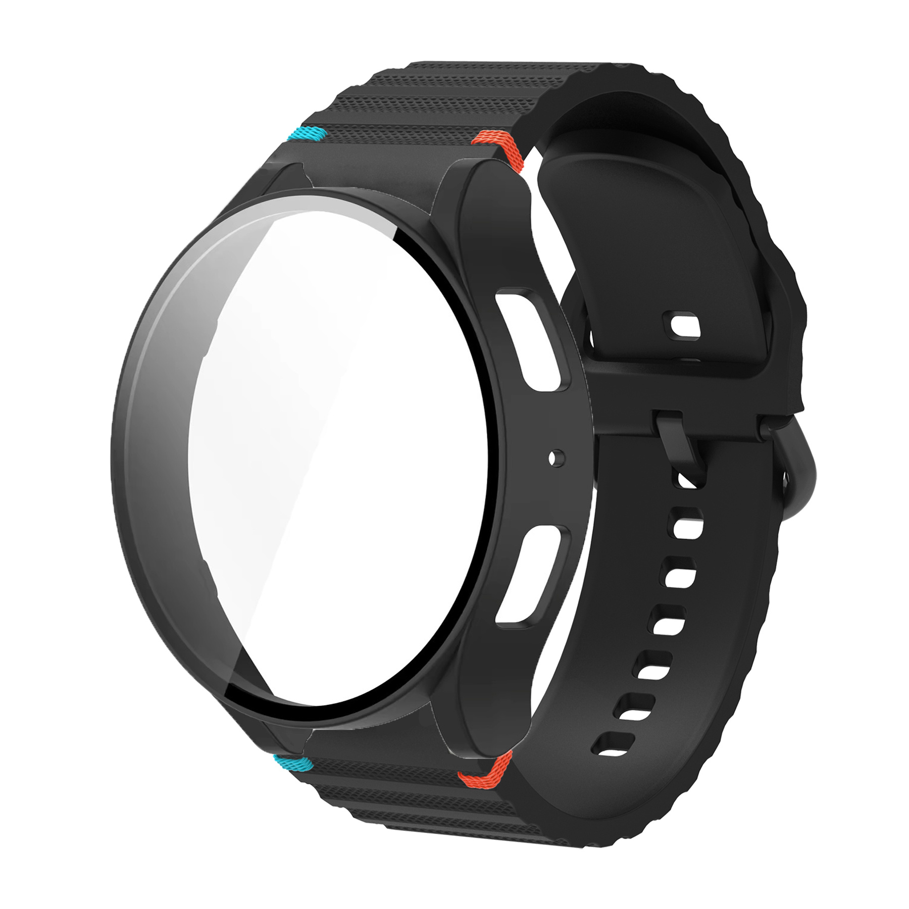 1 dona Silikon Sport Tasmali Wavy Stitch Dizayni va Temperlangan Shisha Himoya Qopqog'i Samsung Galaxy Watch 7/FE/6/5/4 (44mm/40mm) uchun - Tushishdan himoyalovchi, Chizishdan himoyalovchi, Mustahkam Tasma