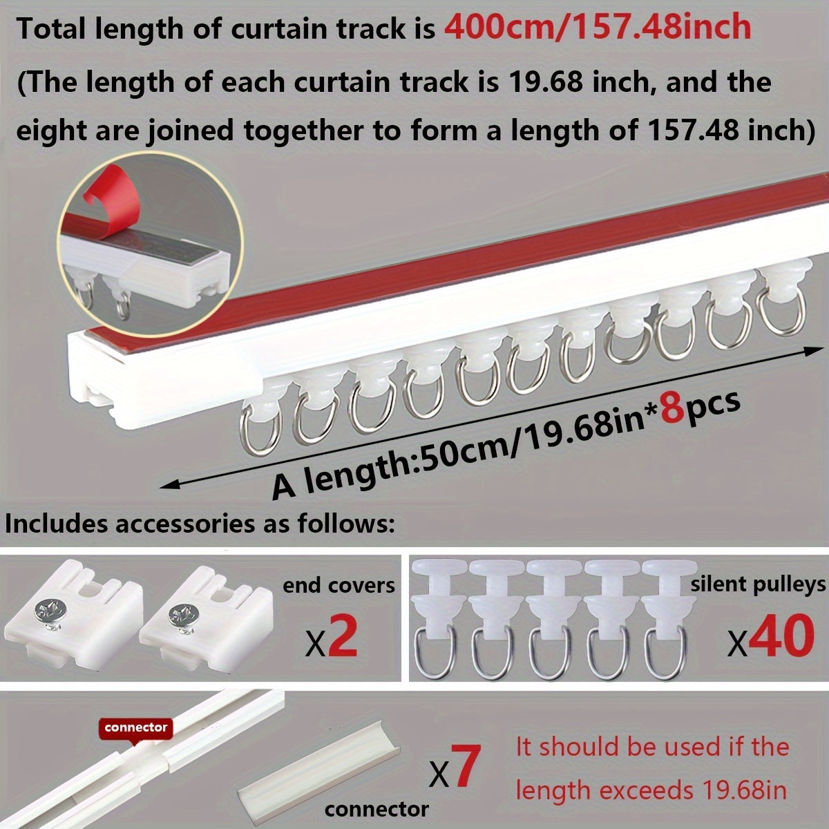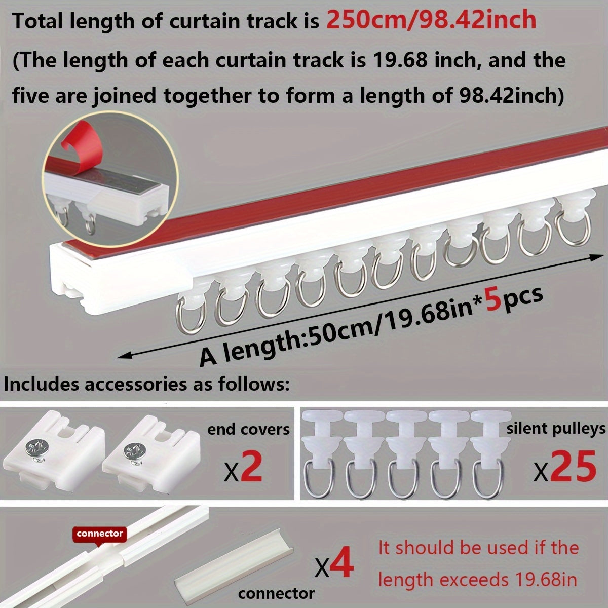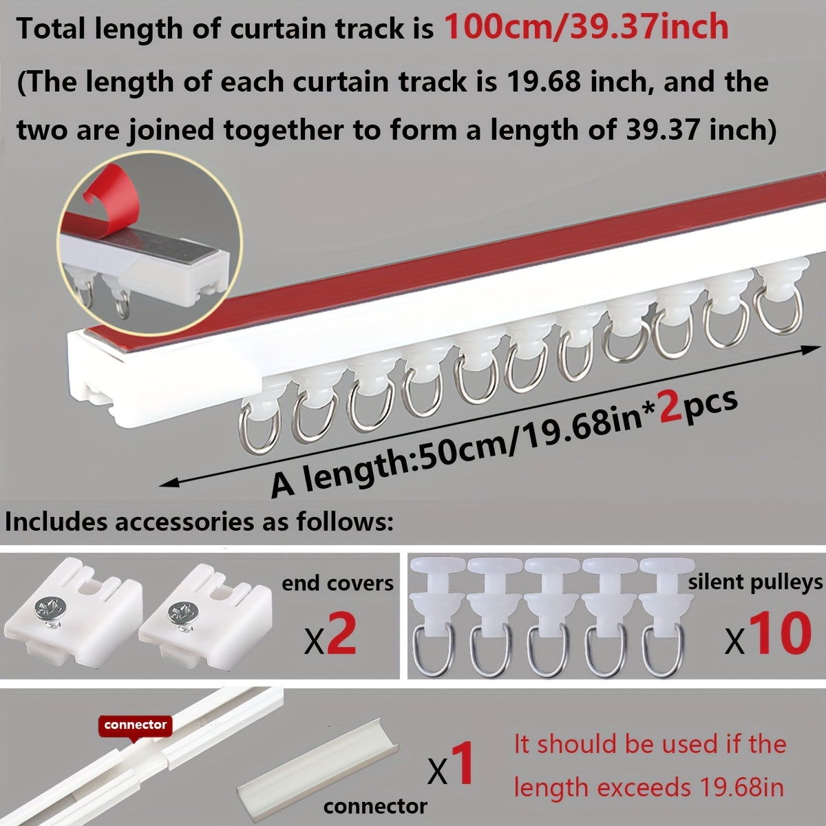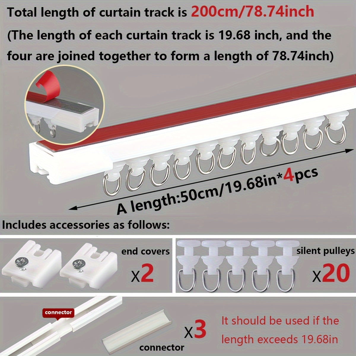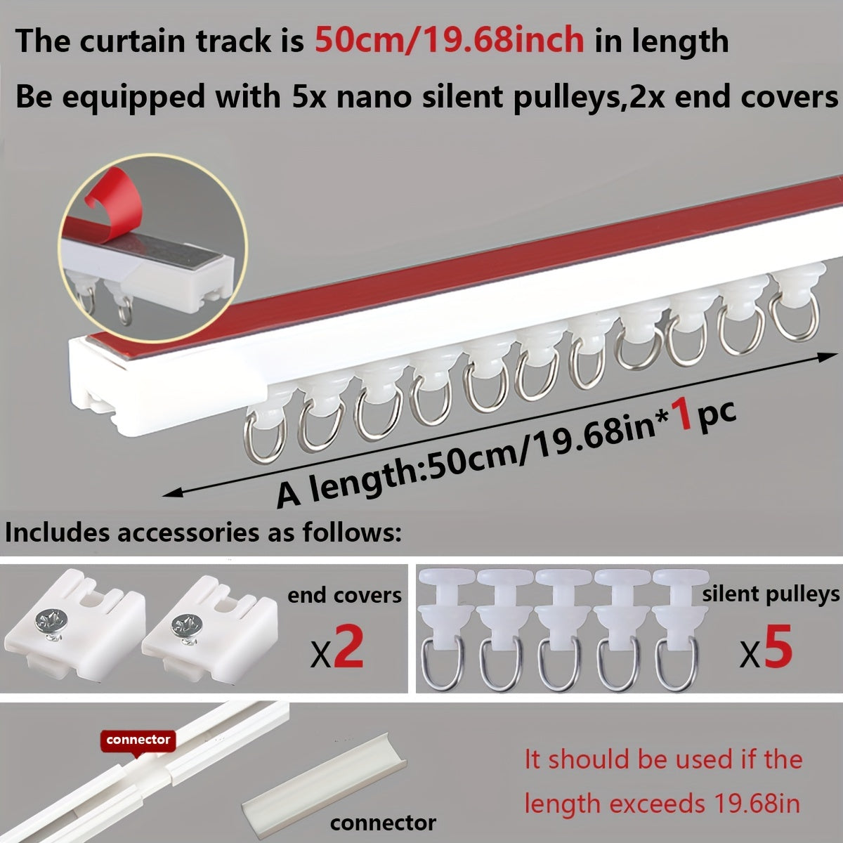 1 dona Kuchli yopishtiruvchi pardalar yo'li, uyda, yotoqxona yoki hammomda shovqinsiz sirpanish uchun