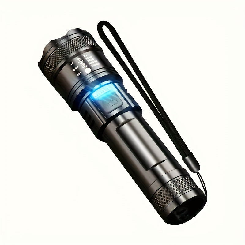 1 dona Taktik LED Chiroq, O'zgaruvchan Zoom bilan, 3 Ta'lim Rejimi, USB Type-C Qayta Zaryadlanadigan, 1200mAh Li-ion Batareya, Suvga chidamli emas, USB Kabelni o'z ichiga oladi, Tashqi Ishlar uchun Portativ Yoritish