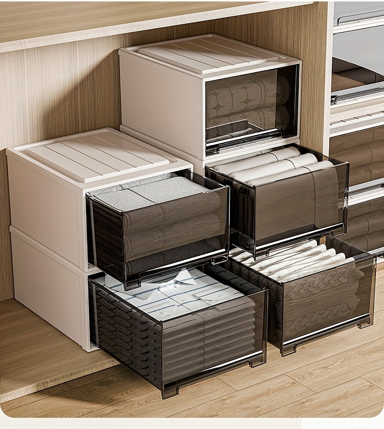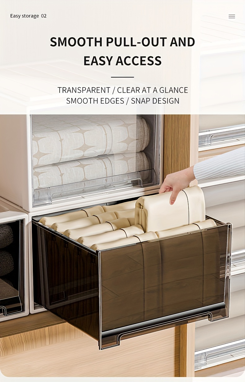1 dona shaffof, to'plangan tortma saqlash qutisi, turli xil narsalar uchun g'ildiraklar bilan. Katta sig'im, suv o'tkazmaydigan, oson yig'iladigan, to'rtburchak shakli. Tishlar, kiyimlar, o'yinchoqlar, kitoblar va boshqalar uchun ideal.