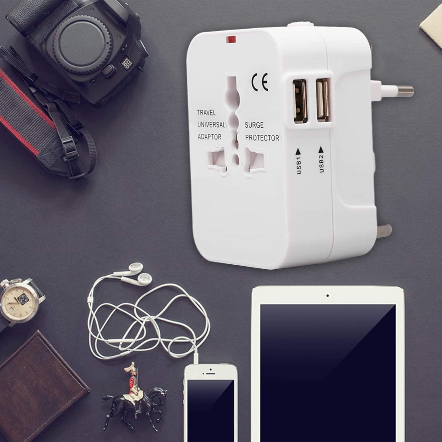 1 dona Sayohat Adapteri, Telefonlar va Noutbuklar uchun Ikki USB Porti, Qisqa Dizayn, 3 Ta Rang Tanlovi, AQSH/EU/UK/Aus bilan Mos Keladi