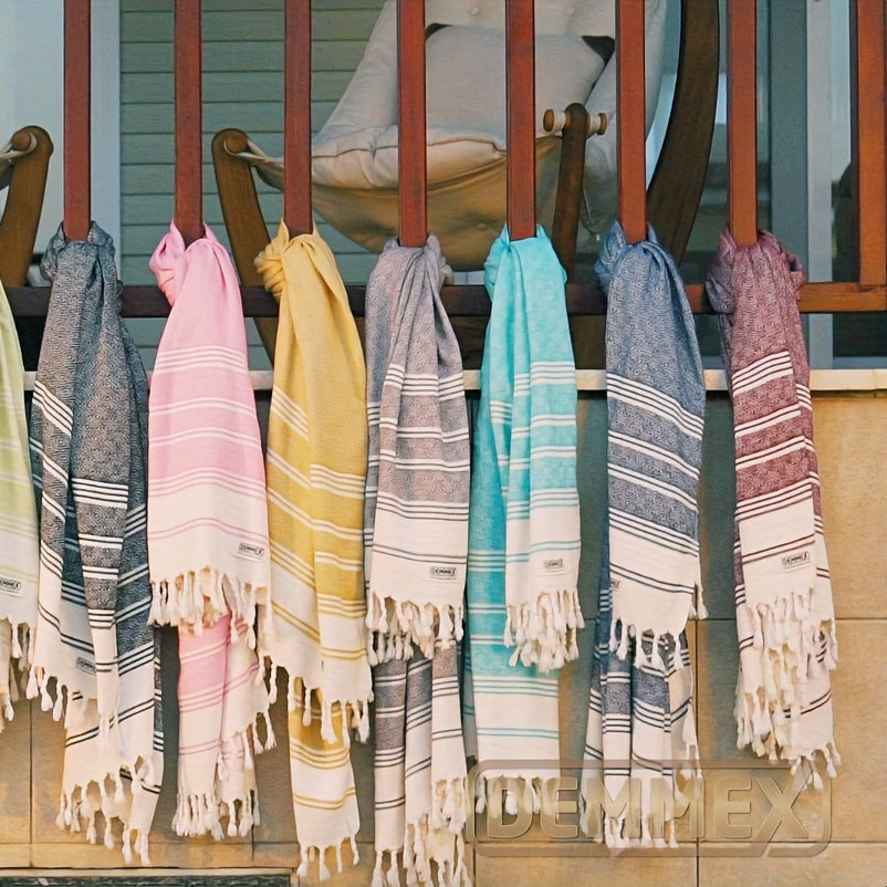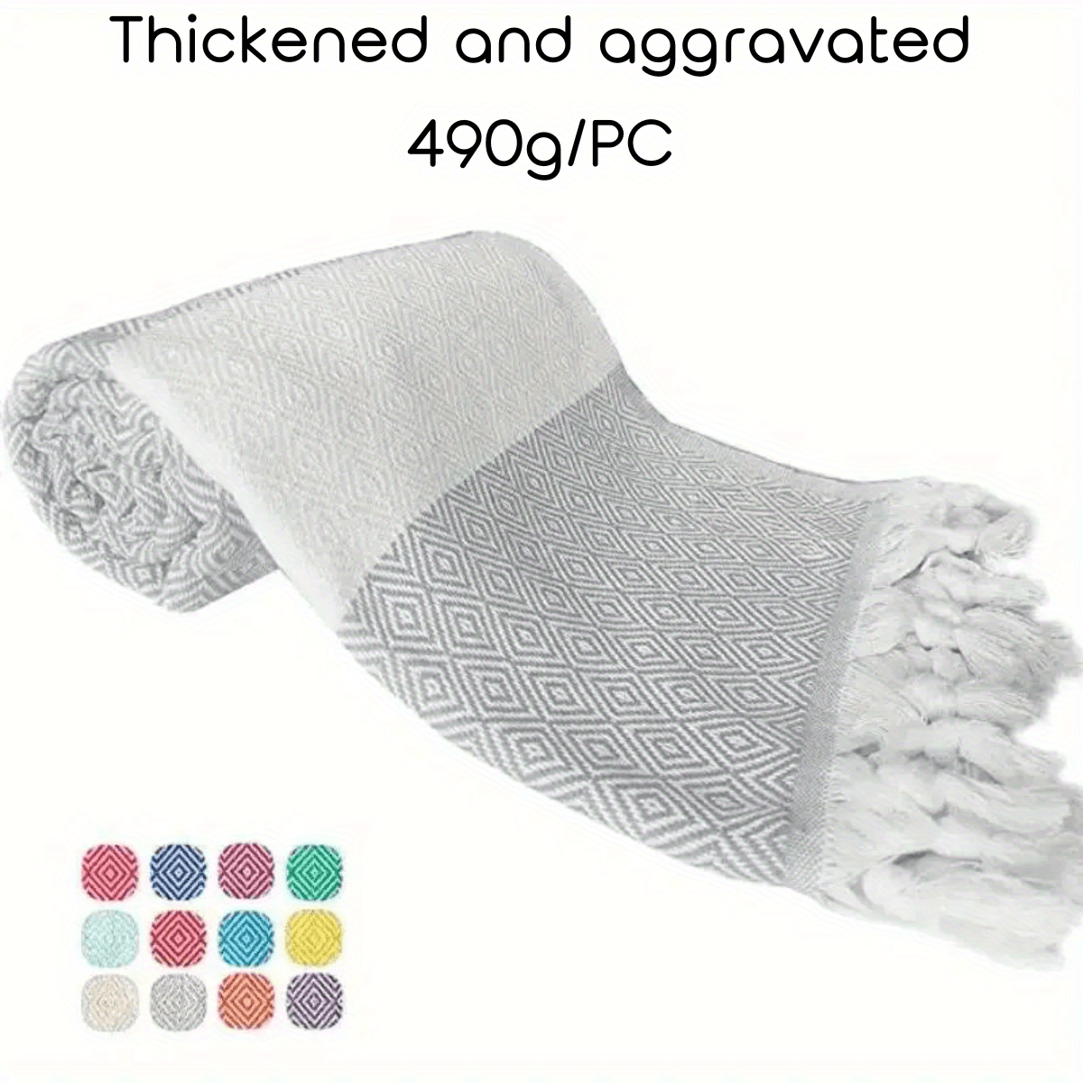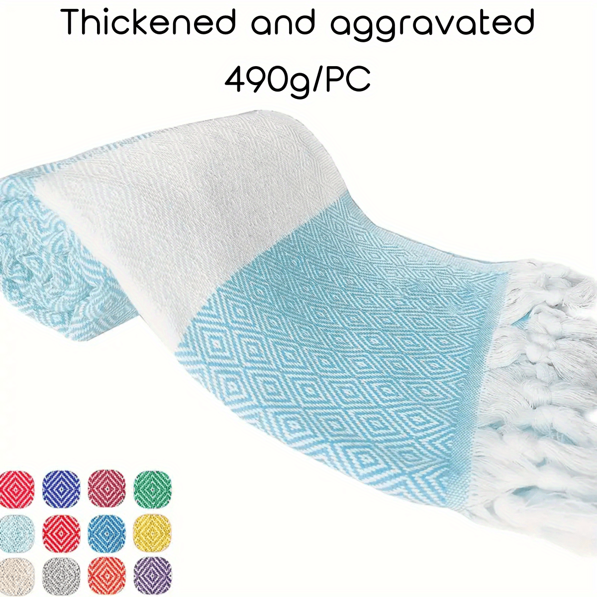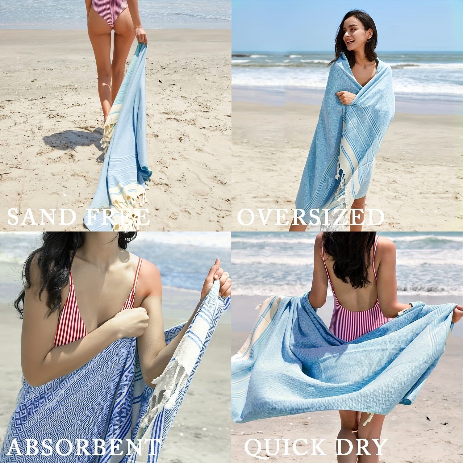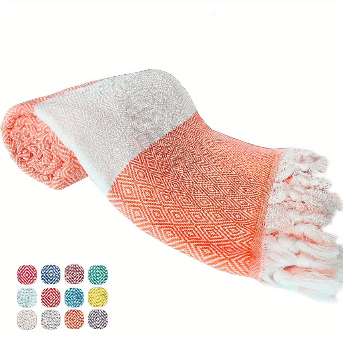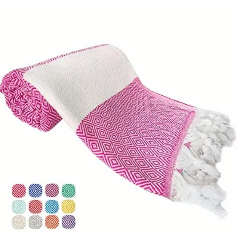 1 dona turk plyaj sochiq, jakardli romb dizayni bilan, tez quriydigan va qumga yopishmaydigan, o'lchami 71" x 39" (100 sm x 180 sm) plyaj va hammomda foydalanish uchun.