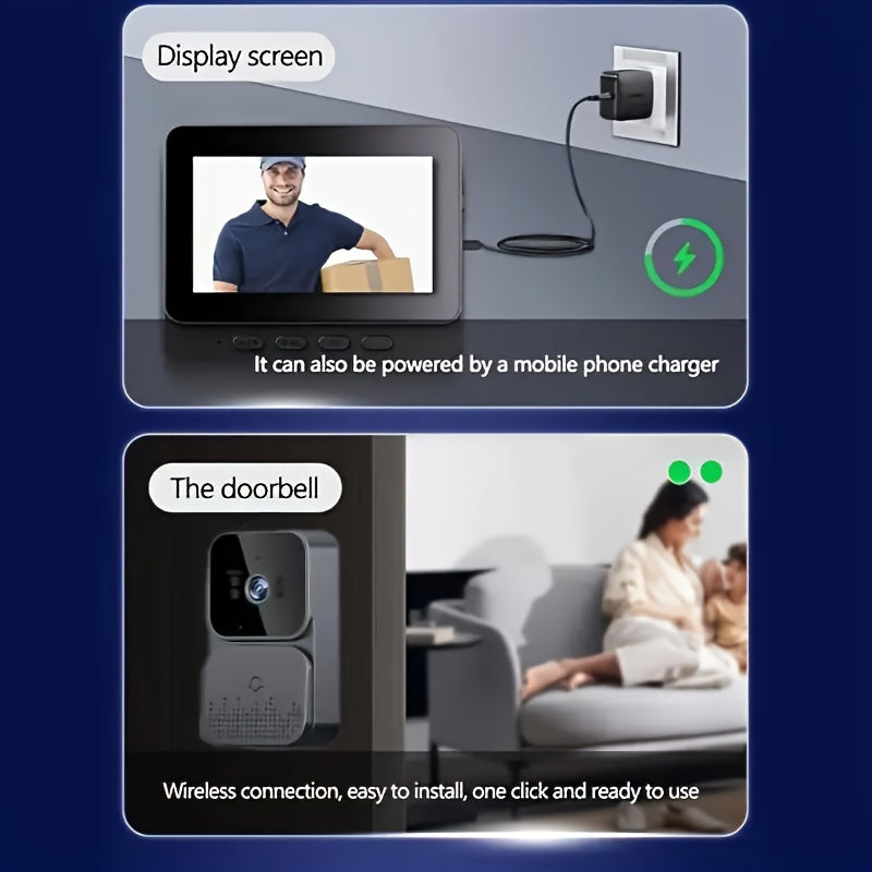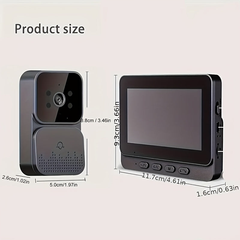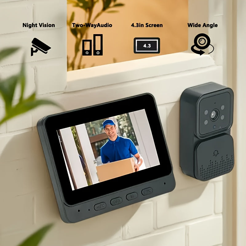 1 dona video eshik qo'ng'irog'i interkom bilan, 10.92 sm ekran, infraqizil tungi ko'rish, ikki tomonlama gaplashish, uzoq muddatli batareya, ilovaga ehtiyoj sezmasdan oson ulanish.