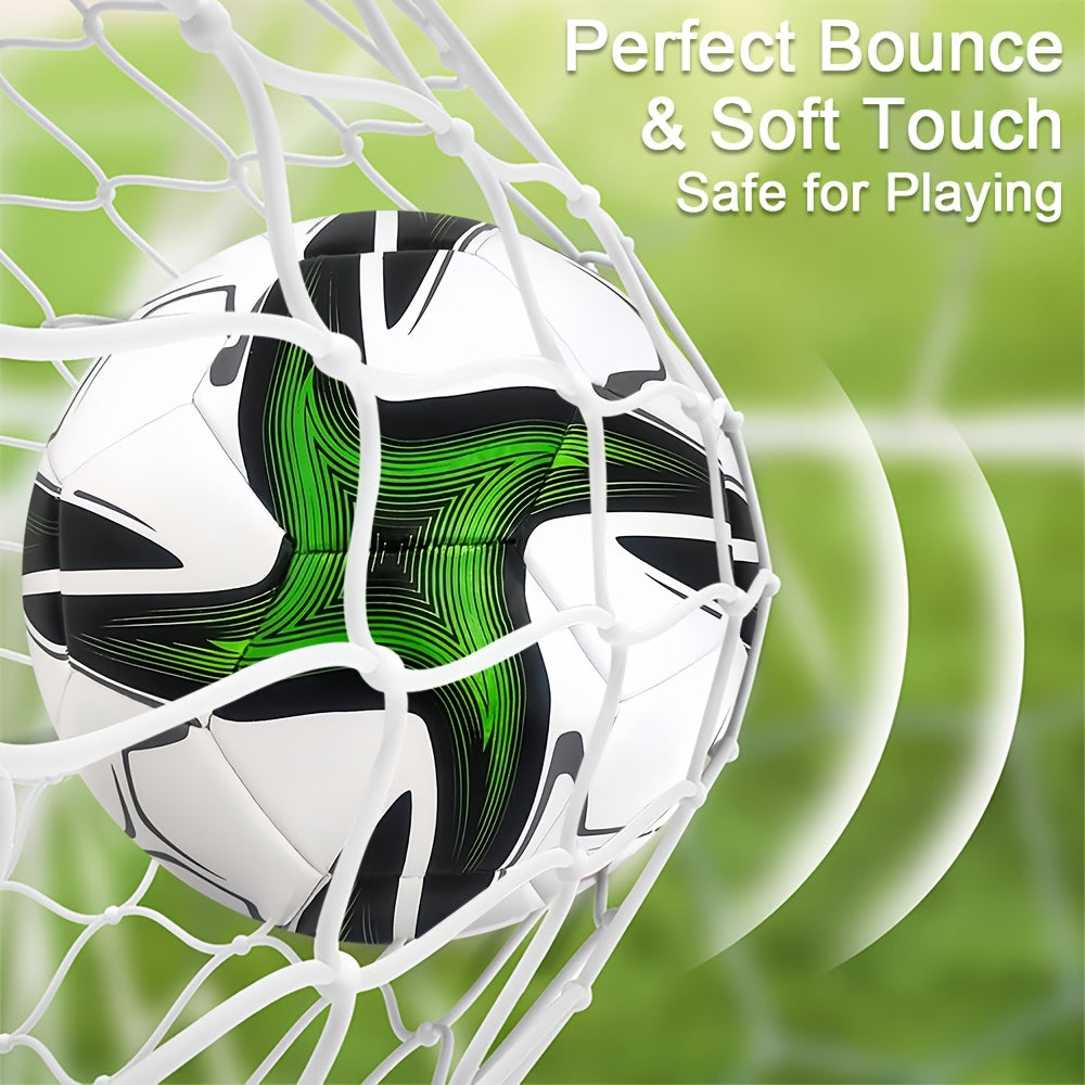 1 dona Vortex naqshidagi futbol to'pi, 5 o'lcham, mustahkam PVC material, ochiq havoda mashg'ulotlar va o'yinlar uchun ideal, barcha mavsumda o'ynash, elektr yoki inflator talab qilinmaydi.